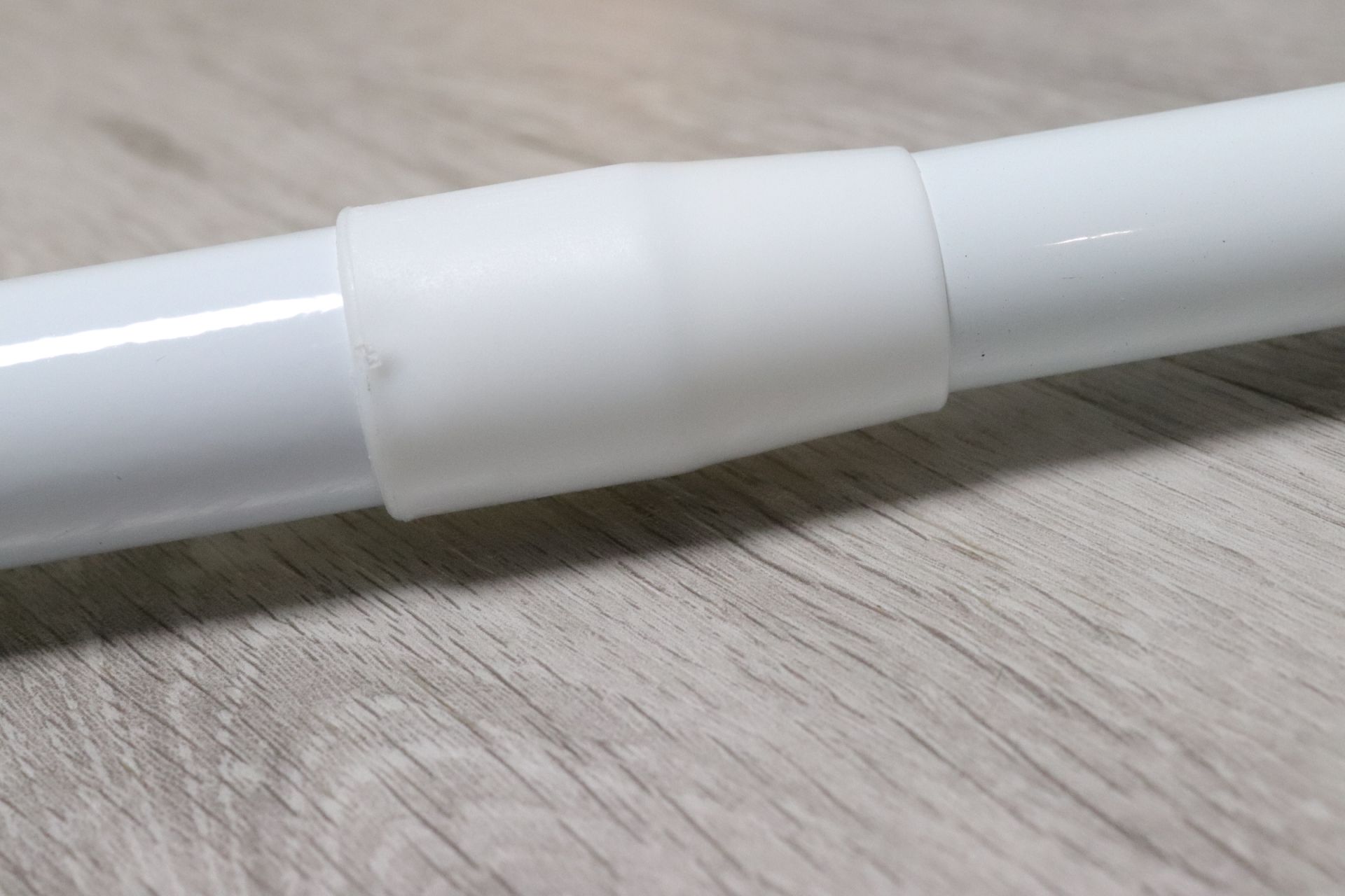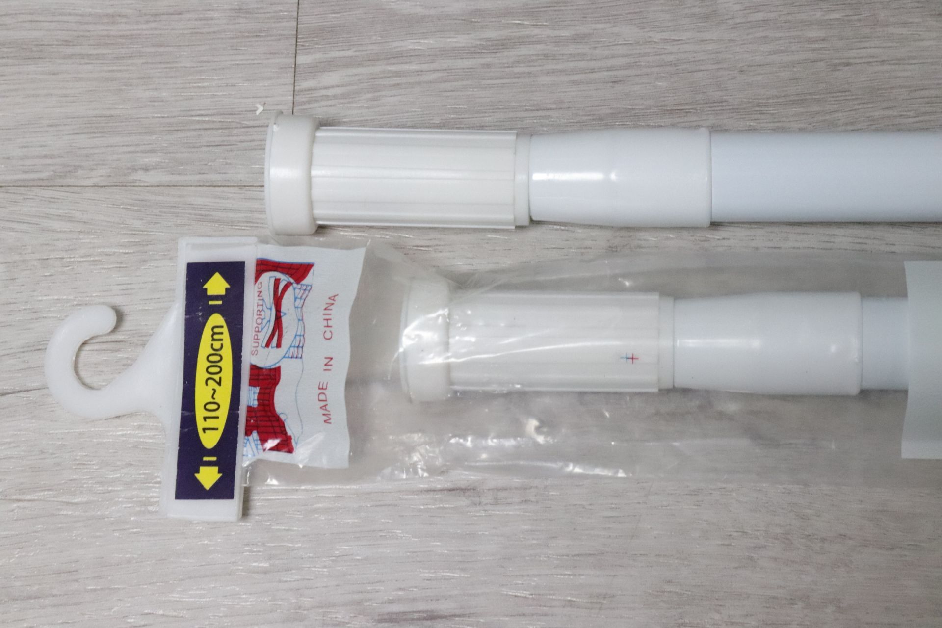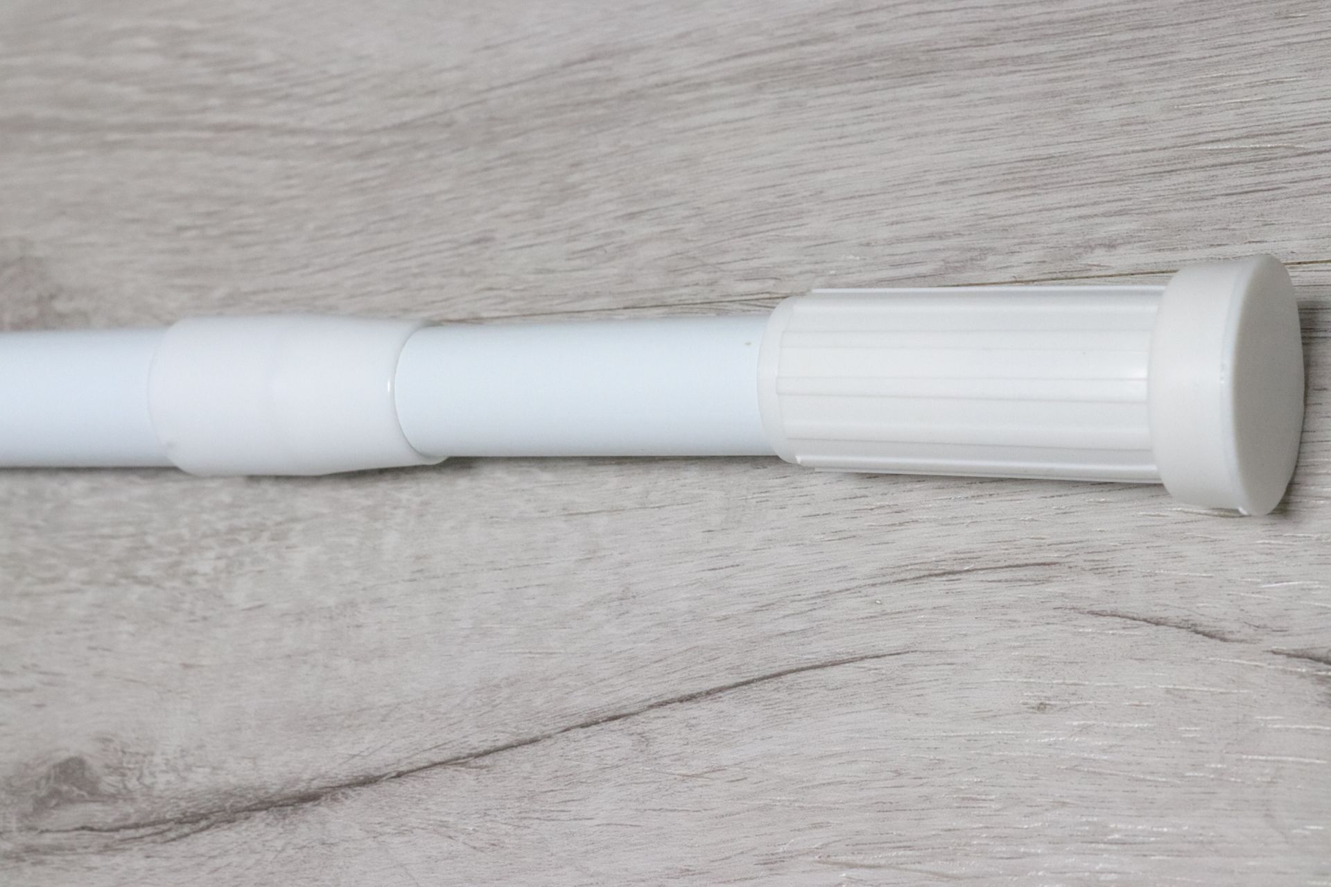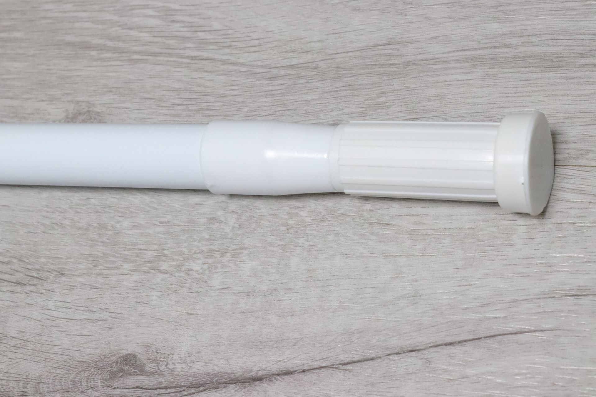 Металл карниза на пружинном основании прямой, покрыт хромом. Он легко фиксируется между стенами с помощью телескопа и пружины. Подходит для расстояний от 70 см до 120 см. Это не требует бурения стен и каких -либо дополнительных крепеж. В комплекте нет колец.