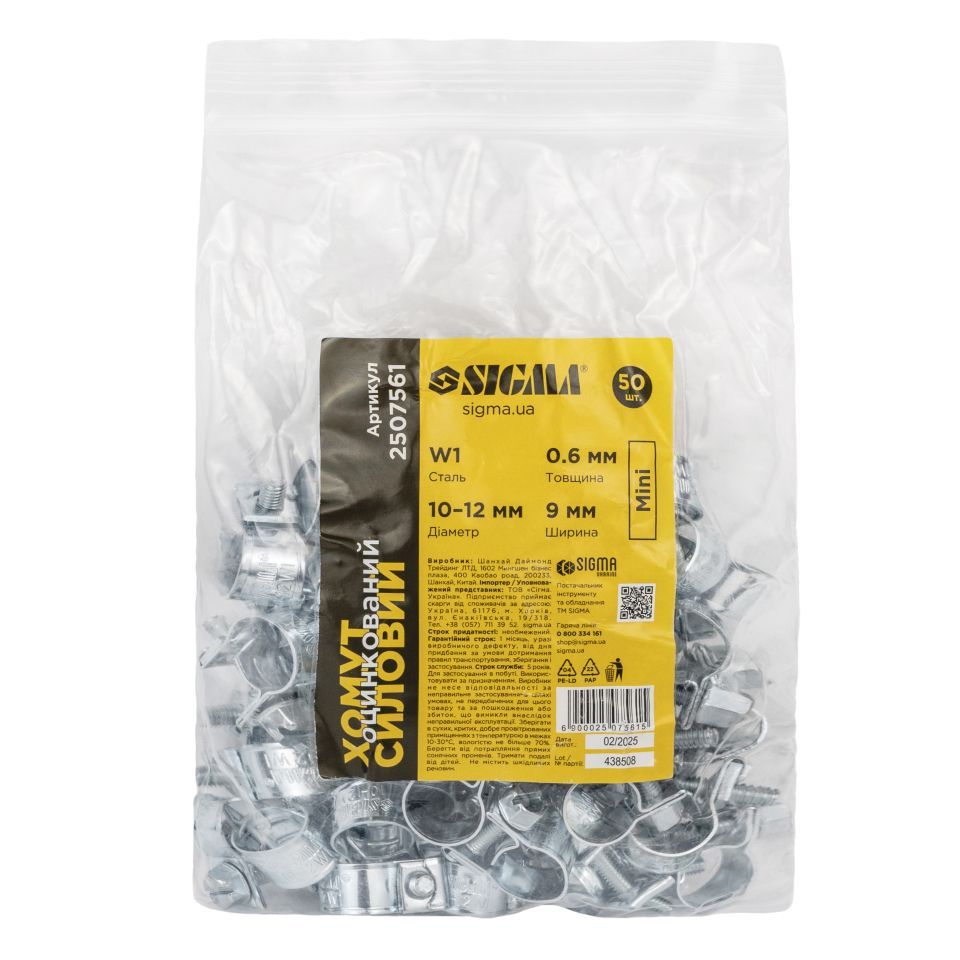 Хомут силовой оцинкованный Mini 9мм Ø10-12мм 50шт SIGMA 2507561