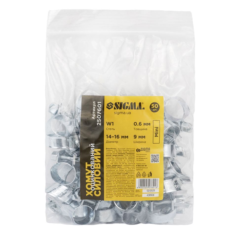 Хомут силовой оцинкованный Mini 9мм Ø14-16мм 50шт SIGMA (2507601)