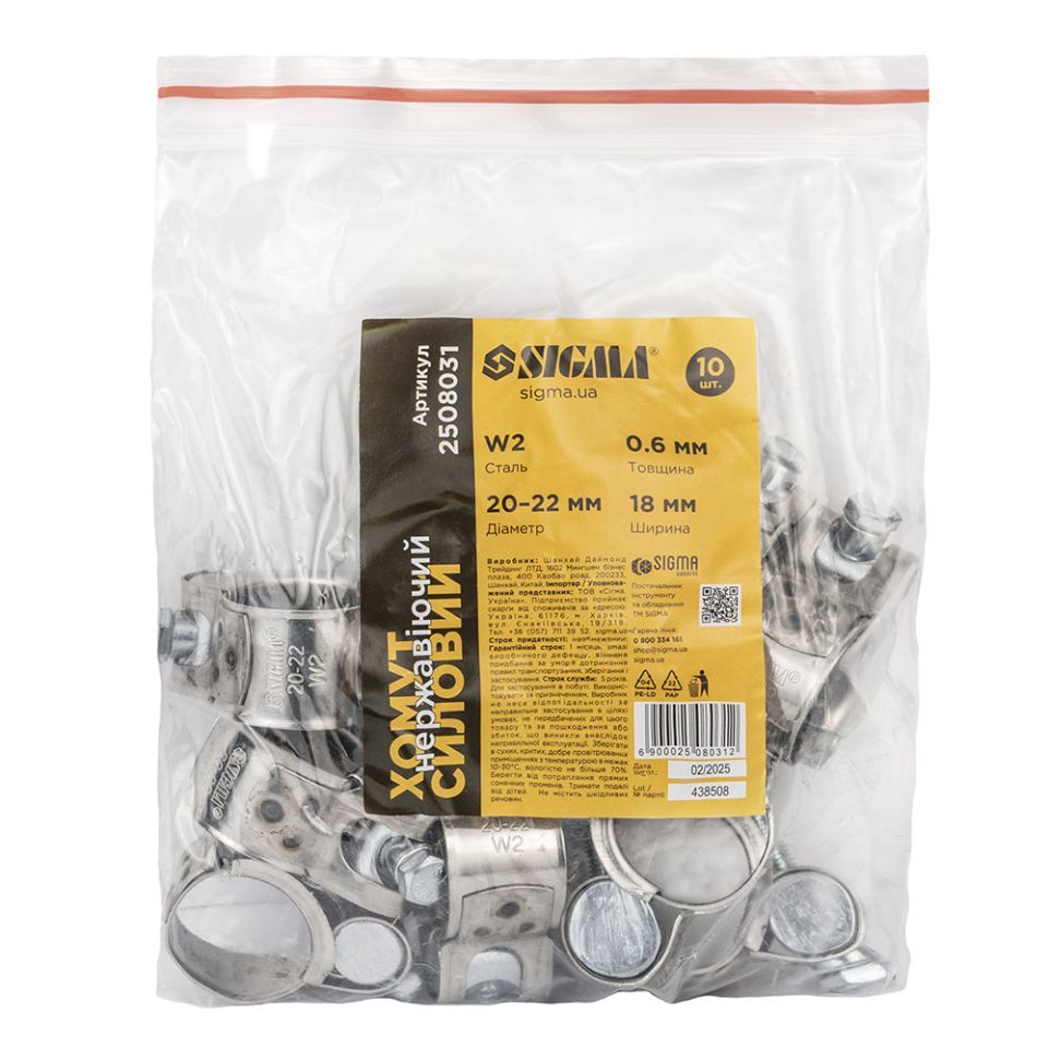 Силовой нержавеющий хомут 18мм Ø20-22мм SIGMA 2508031