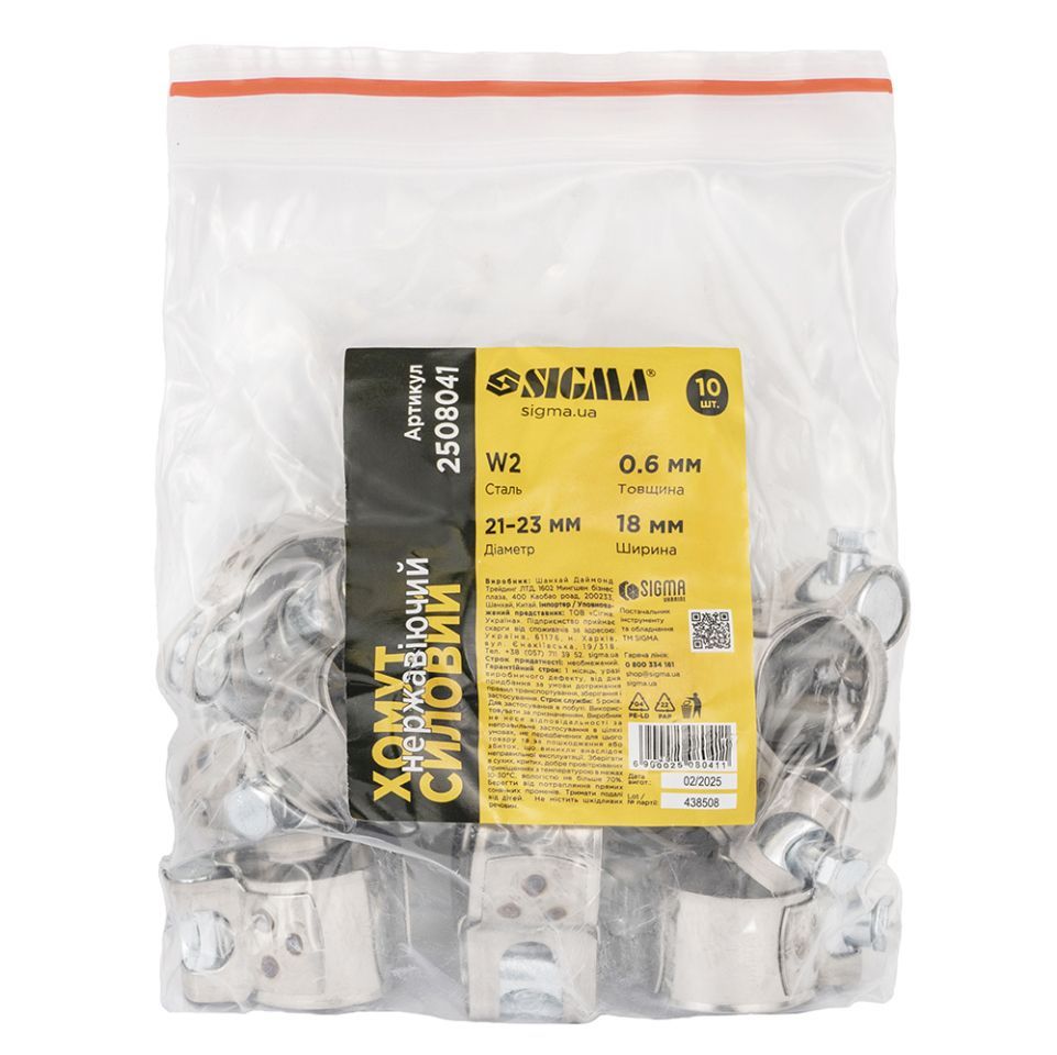 Хомут силовой нержавеющий 18мм Ø21-23мм SIGMA 2508041