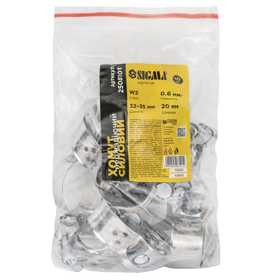Нержавеющий силовой хомут 20мм Ø32-35мм SIGMA 2508101