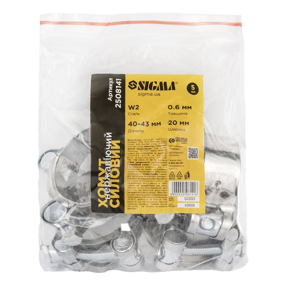 Хомут силовой нержавеющий 20мм Ø40-43мм SIGMA 2508141