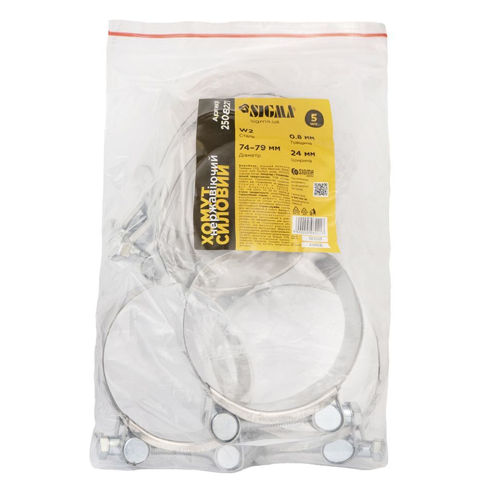 Хомут силовой нержавеющий 24мм Ø74-79мм SIGMA 2508221
