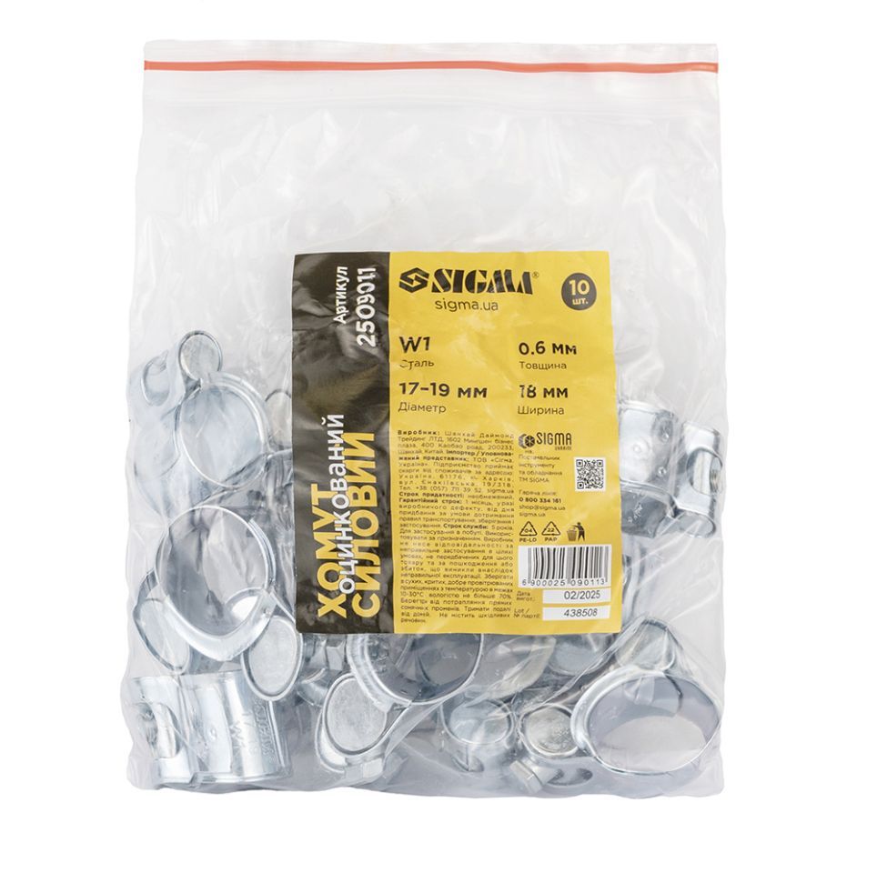 Хомут силовой оцинкованный 18мм Ø17-19мм SIGMA (2509011)