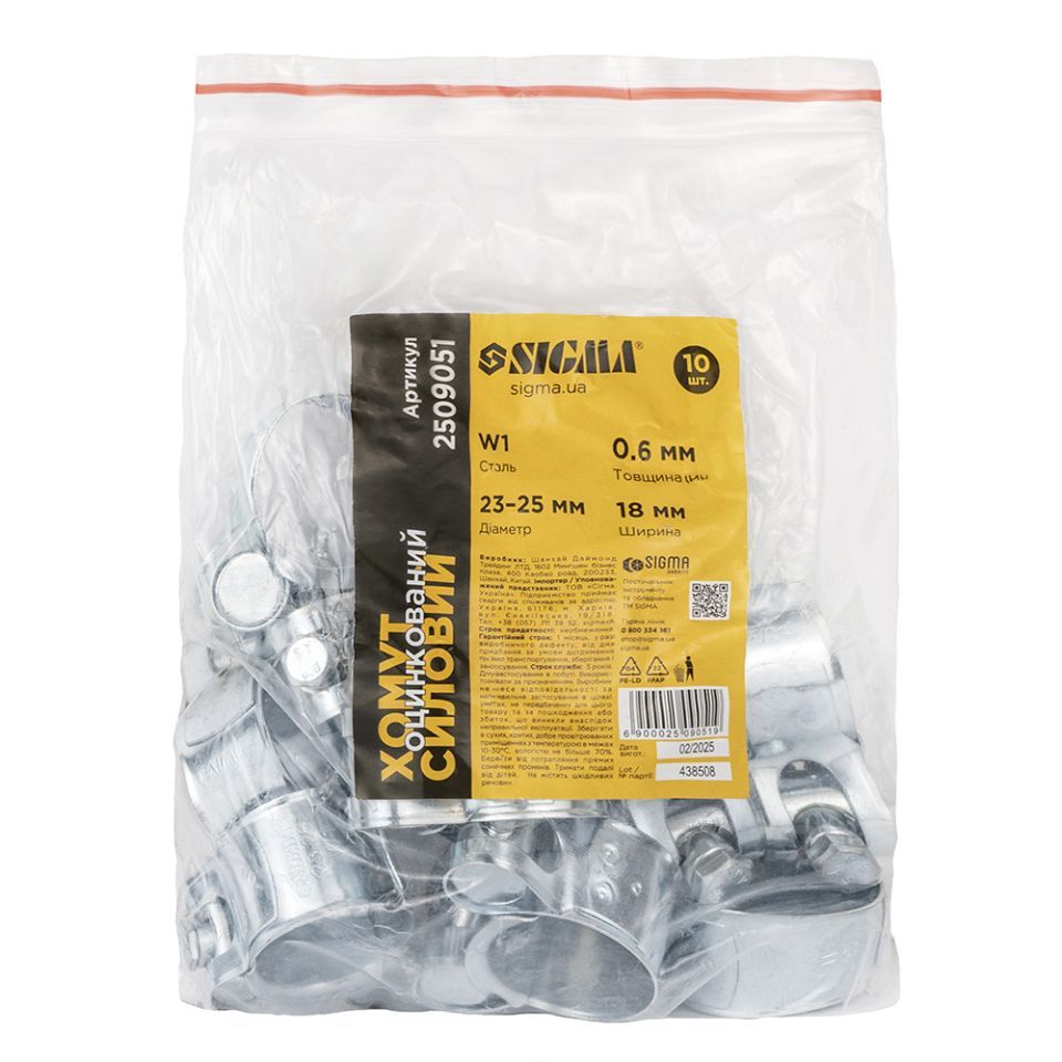 Хомут силовой оцинкованный 18мм Ø23-25мм SIGMA 2509051