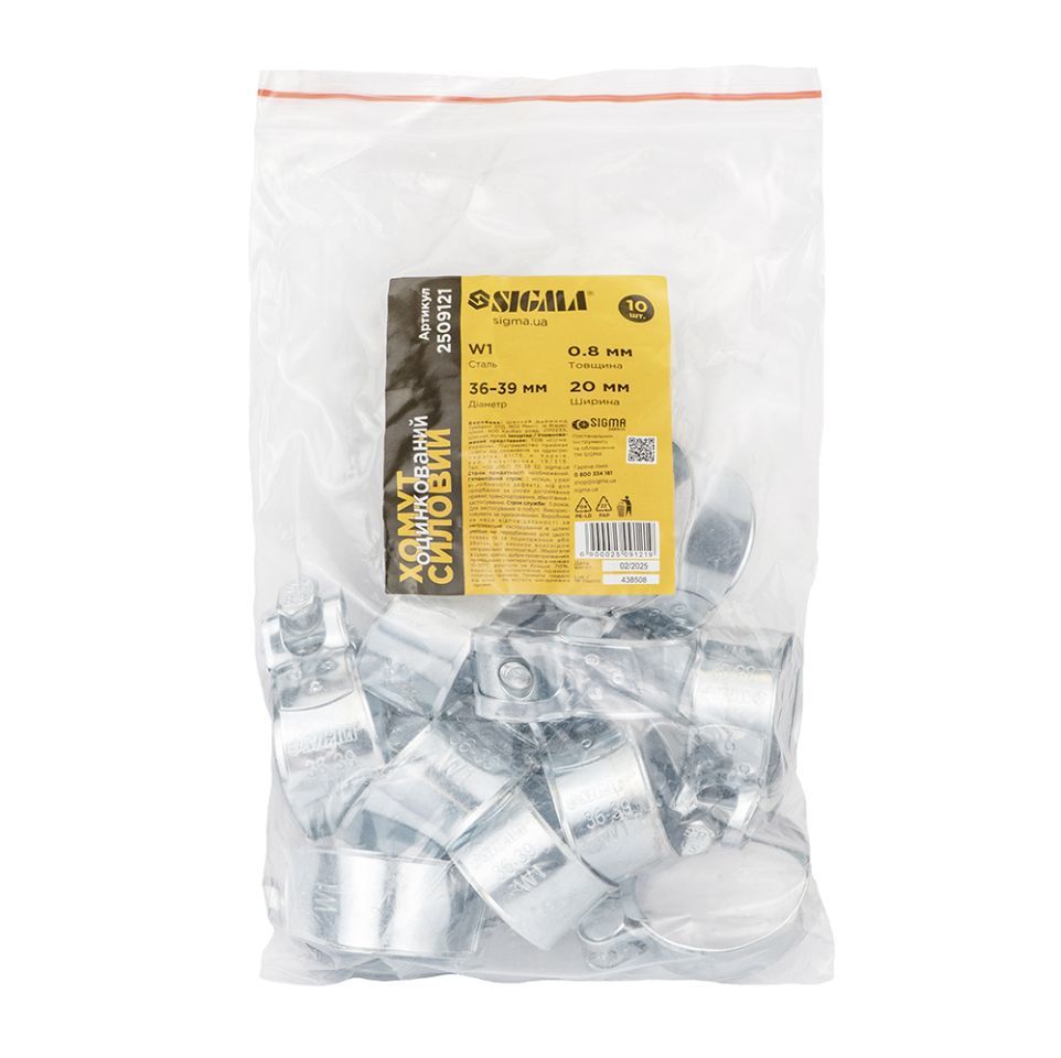 Хомут силовой оцинкованный 20мм Ø36-39мм SIGMA 2509121