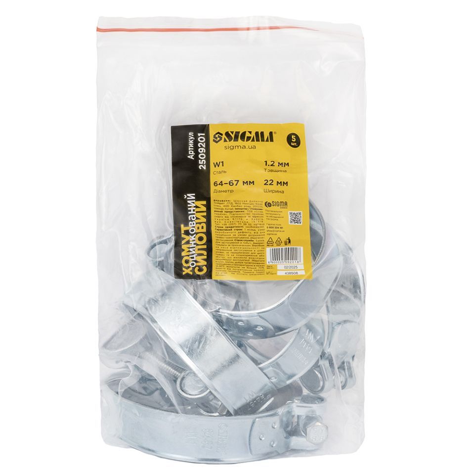 Хомут силовой оцинкованный 22мм Ø64-67мм SIGMA 2509201