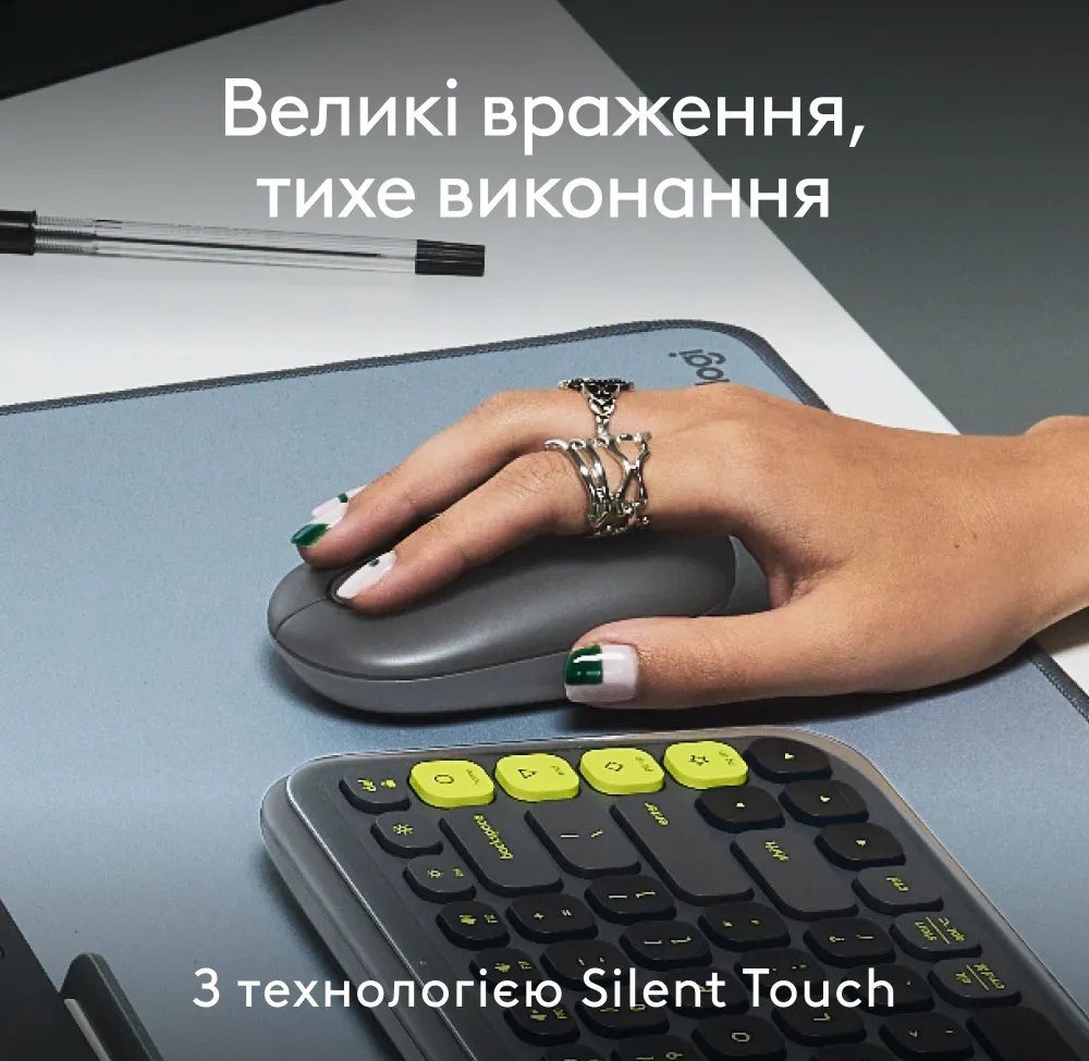 Модель оснащена технологией Silent Touch, обеспечивающей тихие нажатия, интеллектуальным колесом SmartWheel для быстрого и точного прокручивания, а также функцией Easy-Switch для подключения сразу к трём устройствам.