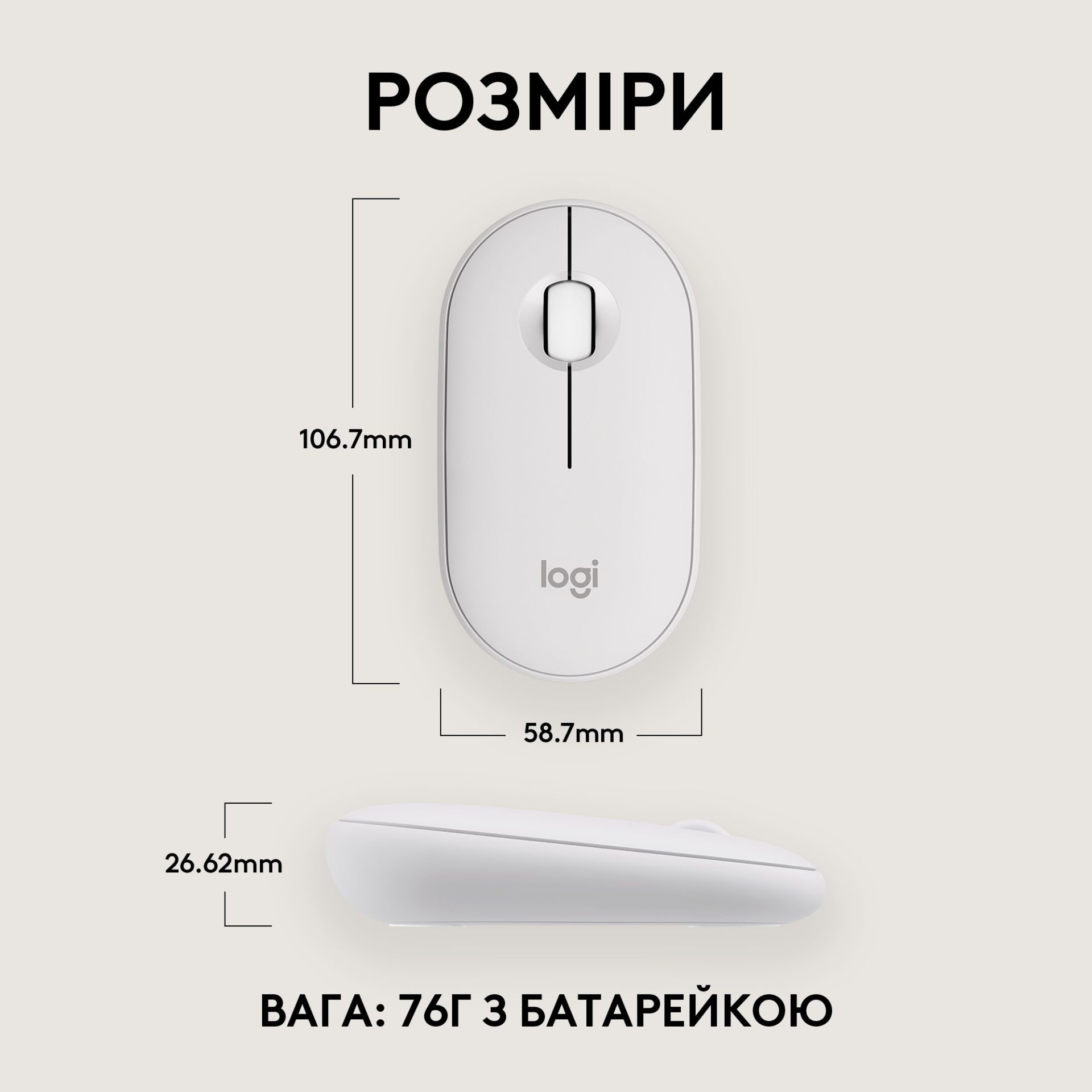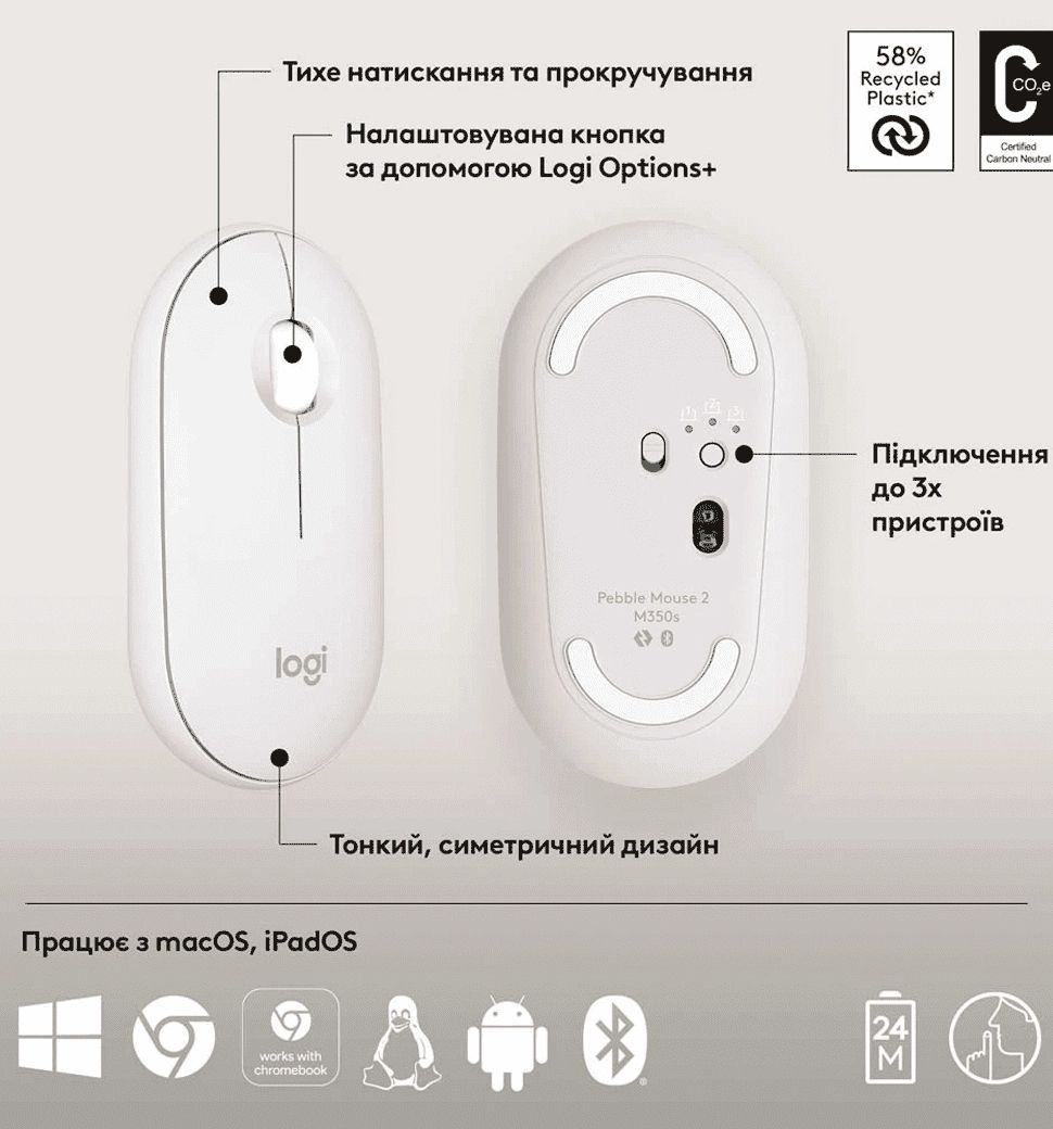 Миша Logitech Pebble Mouse 2 M350s Tonal White (910-007013)