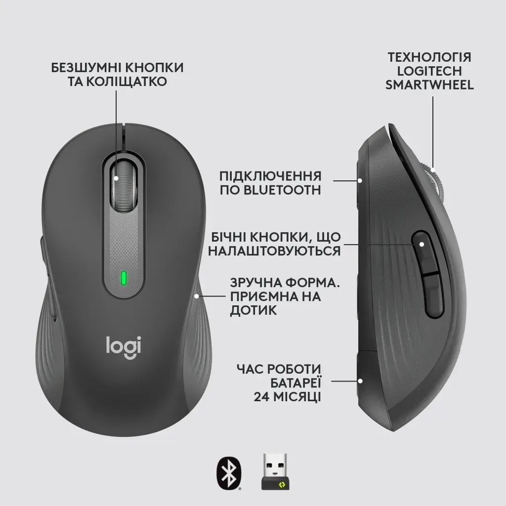 Миша Logitech Signature M650 L Wireless Mouse for Business Graphite (910-006348)