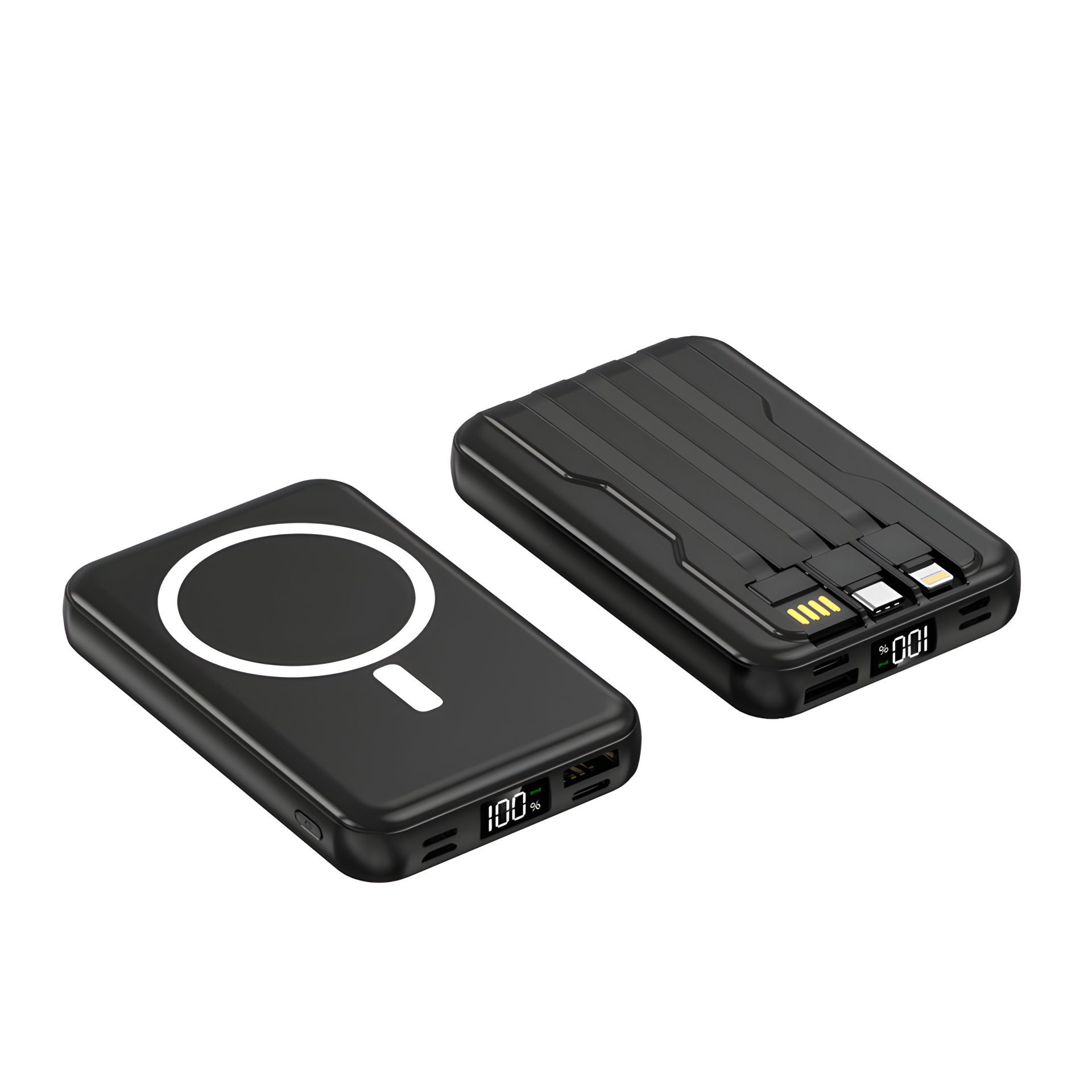 Пауэрбанк MagSafe LX-DX126 (10000 мАч, с магнитной беспроводной зарядкой, LED-дисплеем и встроенными кабелями)