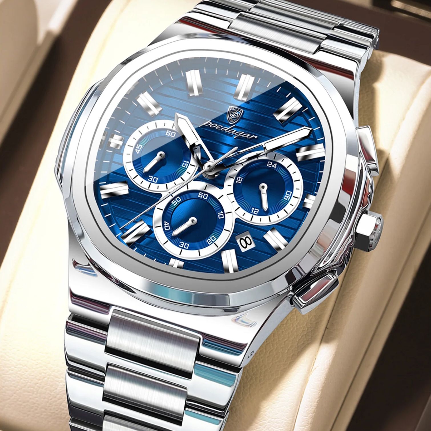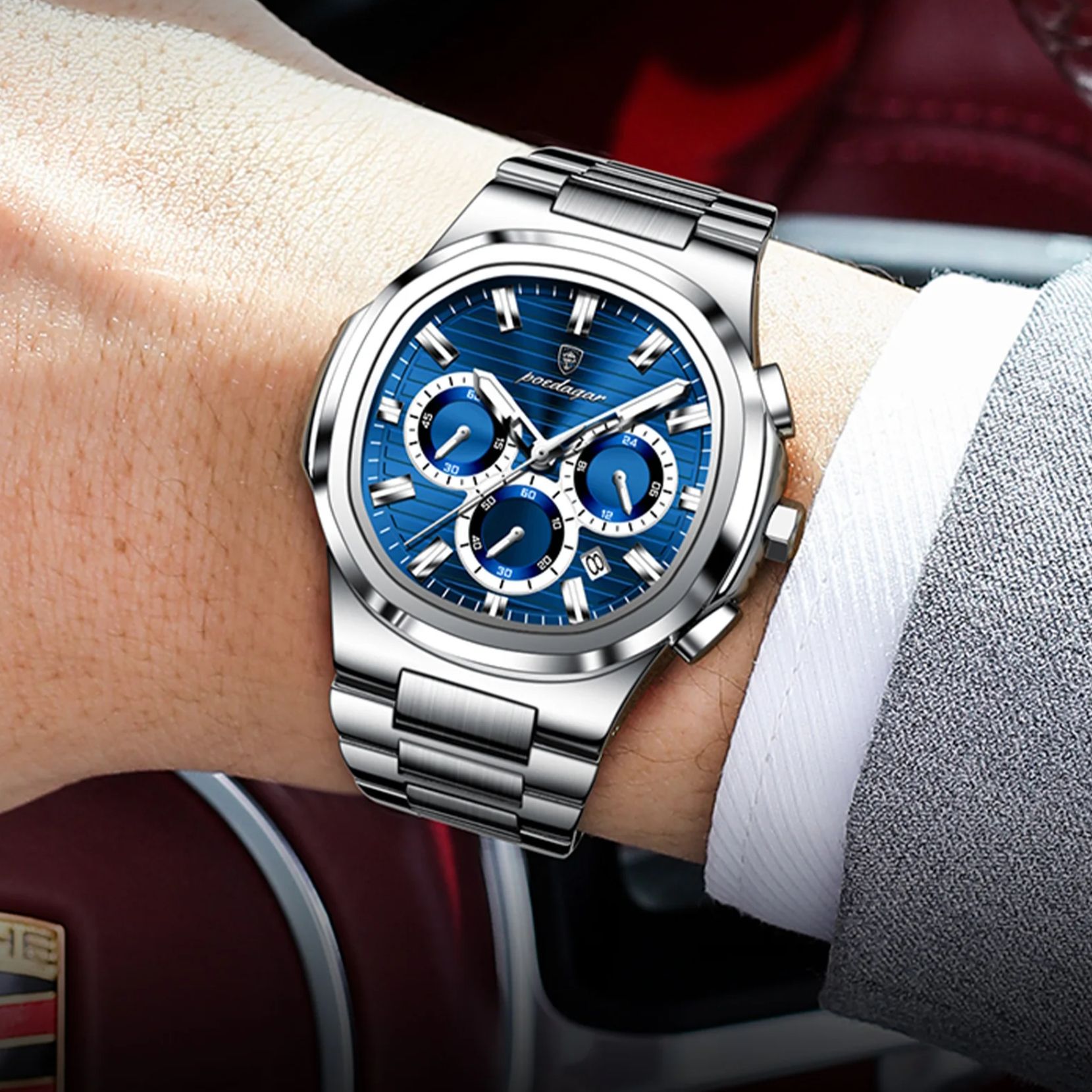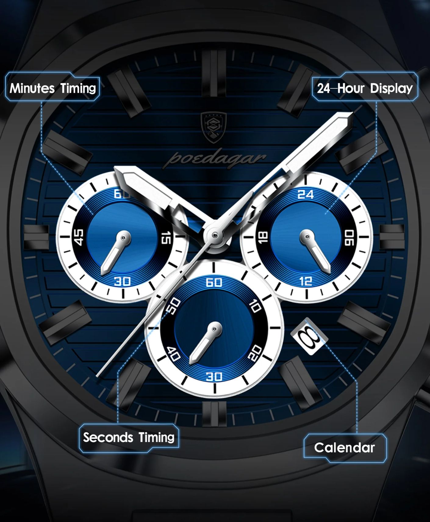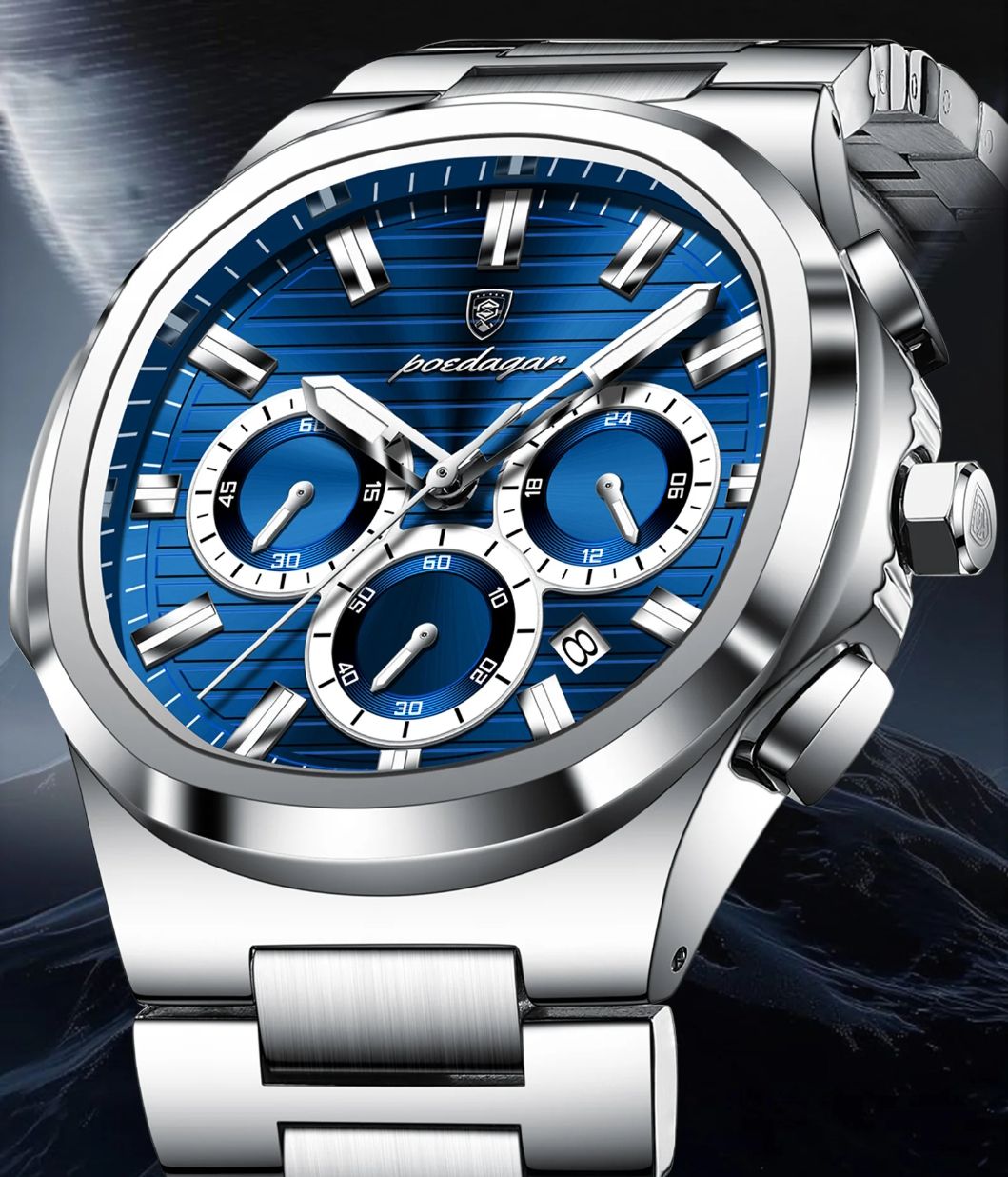 Poedagar – это сочетание элегантности, точности и современного стиля. Часы этого бренда предназначены для тех, кто ценит утонченность в деталях и стремится подчеркнуть свою индивидуальность.Каждая модель Poedagar – это:Качественные материалы: нержавеющая сталь, крепкое минеральное стекло, надежные кварцевые механизмы.Стильный дизайн: от классических решений до современных спортивных форм.Функциональность: водозащита, индикатор даты, светоотражающие стрелки и другие полезные функции.Poedagar – это идеальный выбор для деловых встреч, повседневного стиля или особых событий. Это не просто часы – это выражение вашего вкуса, уверенности и стиля.В комплекте идет официальная гарантия на 12 месяцев.
