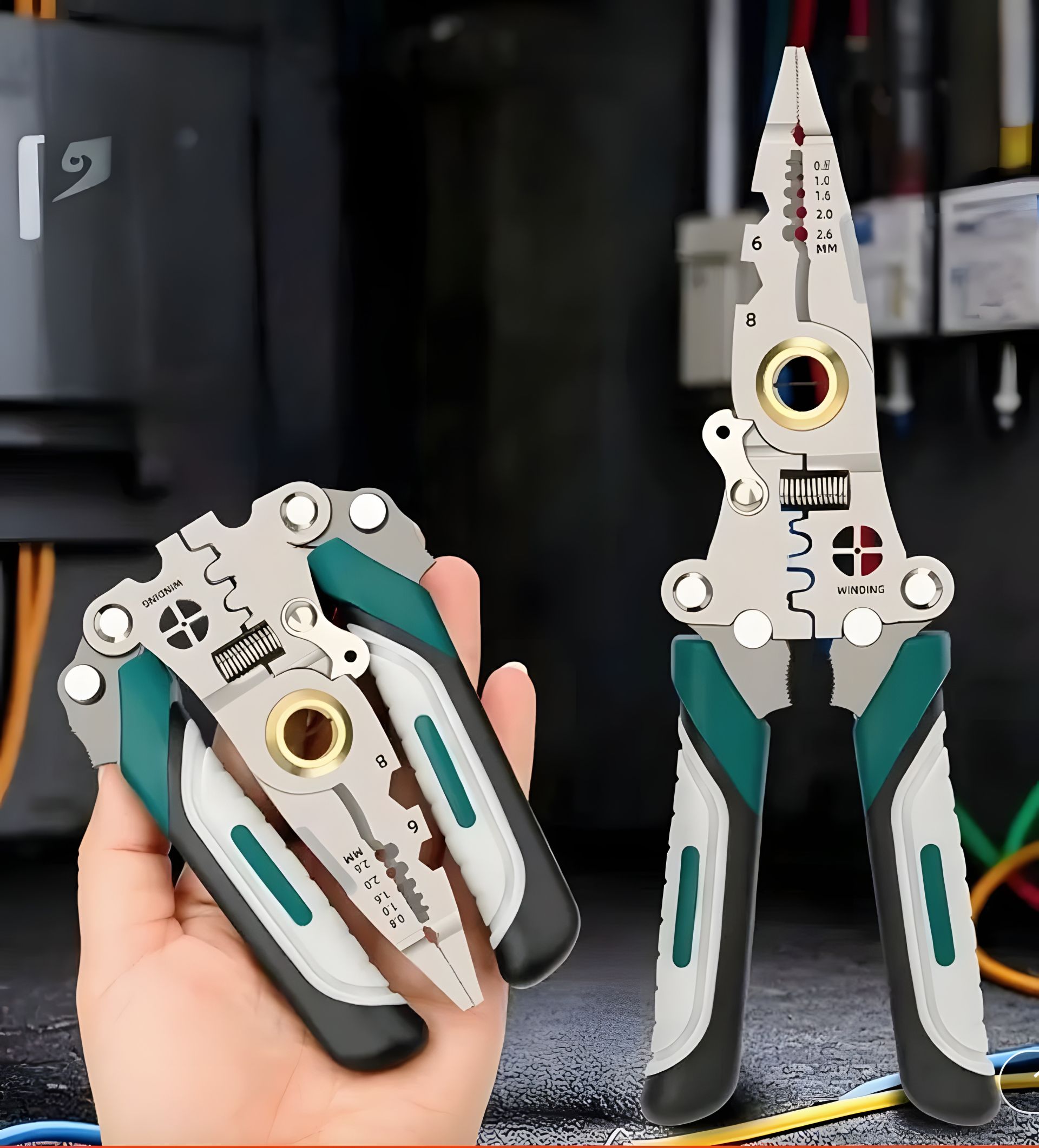 Складные Многофункциональные Плоскогубцы для Электриков - Прочная Высокоуглеродистая Сталь с Инструментами для Снятия Изоляции, Резаками и Обжимными Клипсами - Компактный Дизайн для Работы с Электричеством на Ходу - Зелёные Ручки, Универсальные Съемники | Эргономичные Ручки | Многофункциональный Инструмент