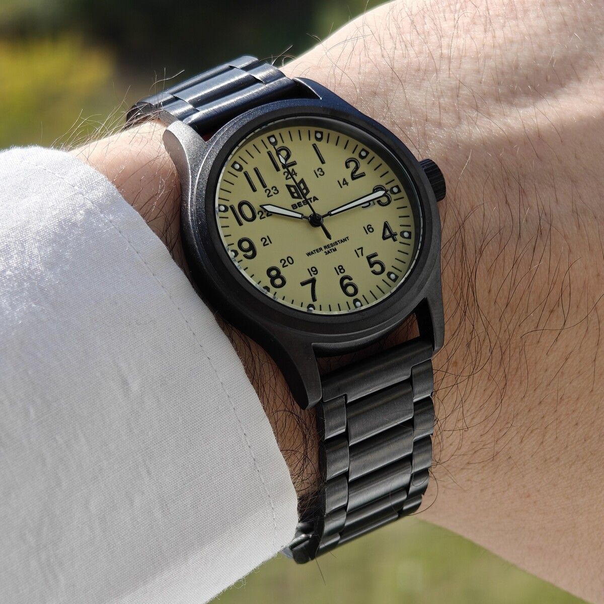 Besta Command – командирские часы разработанные фирмой Besta.Besta – это украинский бренд качественных часов. Каждая модель предназначена для тех, кто ценит качество, инновационный дизайн и функциональность. • Бренд: Украинский бренд с собственными запатентованными дизайнами. • Механизм: надежный механизм обеспечивает точный ход. • Гарантия: 12 месяцев гарантии подтверждают качество часов. • Прочность: Выдерживает высокие нагрузки и экстремальные условия.Сзади выполнена изящная гравировка Тризуба и надпись Героям Слава!Примечание: Ремешок, который изображен на главном фото, является дополнительным и вкладывается в посылку отдельно.