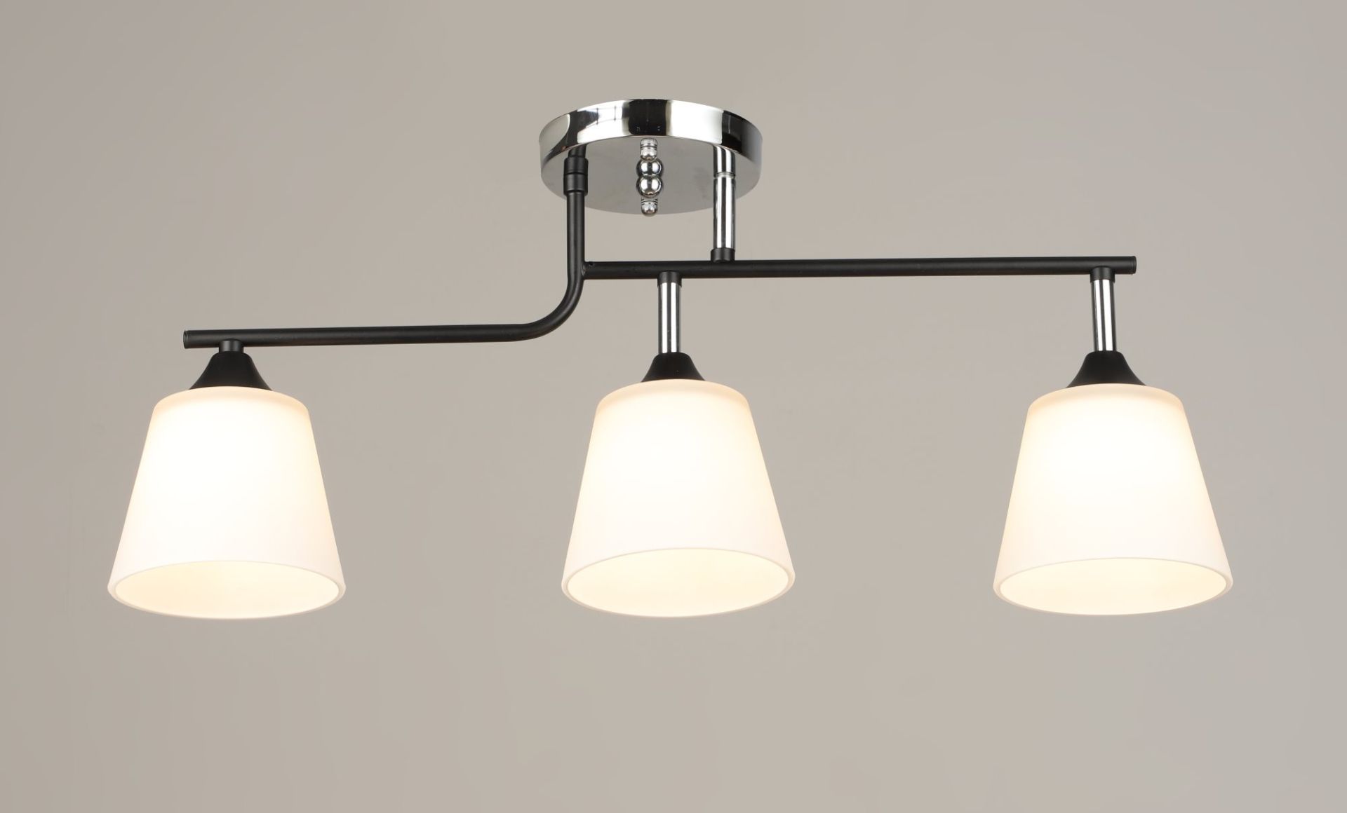 Современная потолочная люстра VALESO K2311/3 на три плафона — это идеальное сочетание индустриального стиля и высокой функциональности. Дизайн светильника представлен элегантным контрастом: прочный металлический корпус в цветах черный + хром создает выразительный акцент. Плафоны из стекла обеспечивают чистое, равномерное рассеивание света.