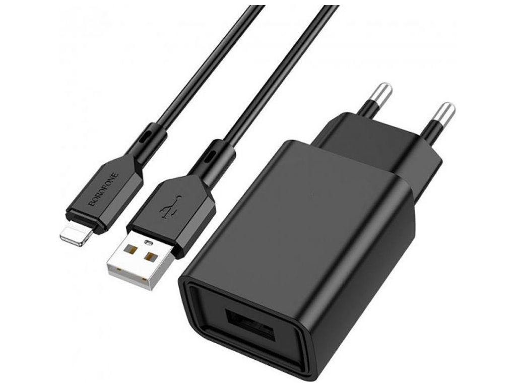 Сетевое Зарядное Устройство Borofone BA68A Lightning 1USB 2.1A Чёрный