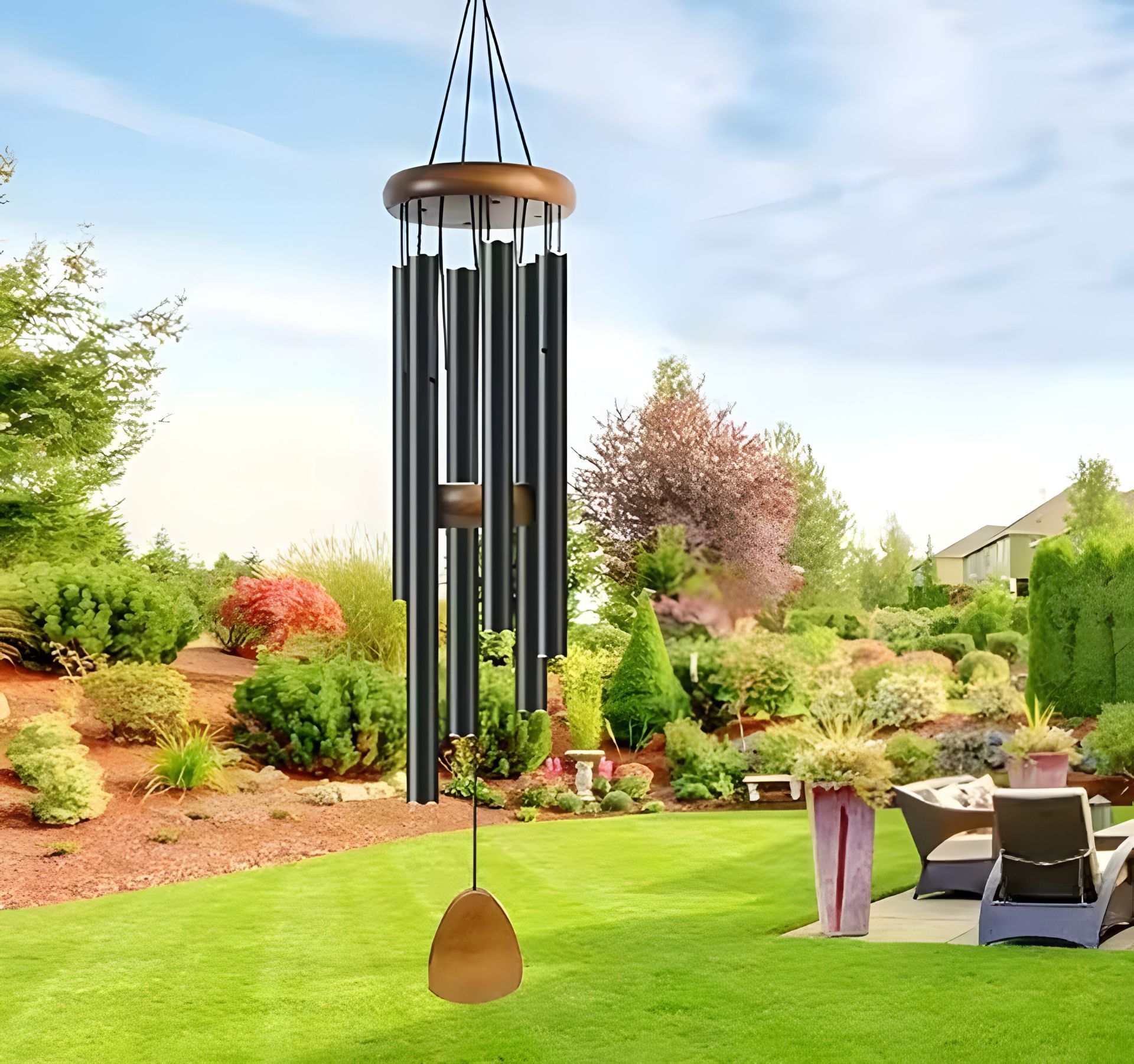 Подвесной дверной колокольчик 6 трубок черный дерево