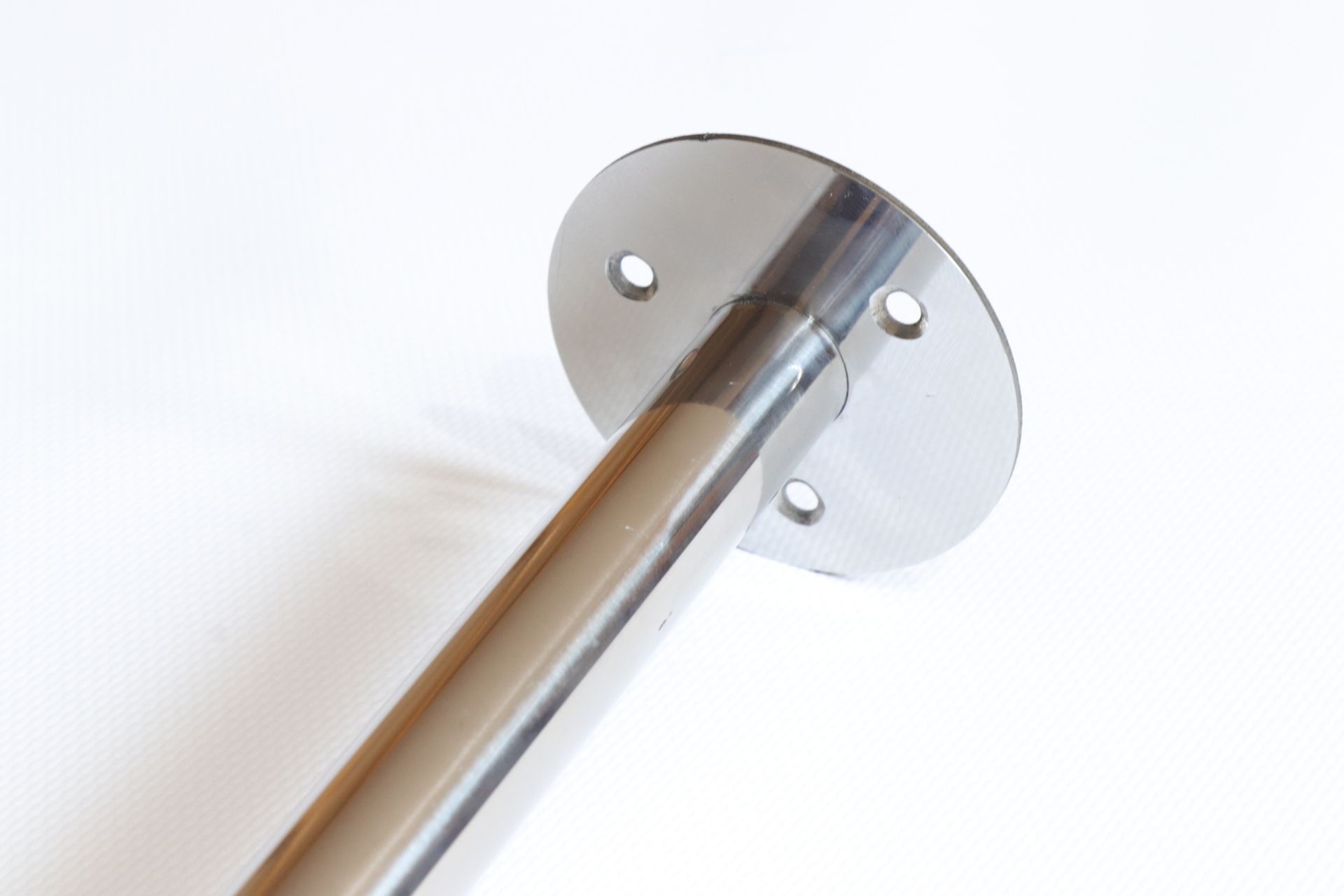 Карниз для шторы в ванную изготовлен из нержавеющей стали и отполирован до блеска. Карниз не поддается койзии и не портится от воды. Труба диаметром 20 мм и толщиной 1,5 мм максимально прочная и надежная. Фланцы имеют отверстия под винт для крепления к стене. Саморезы и дюбели в комплект не входят и подбираются под тип стен дополнительно.