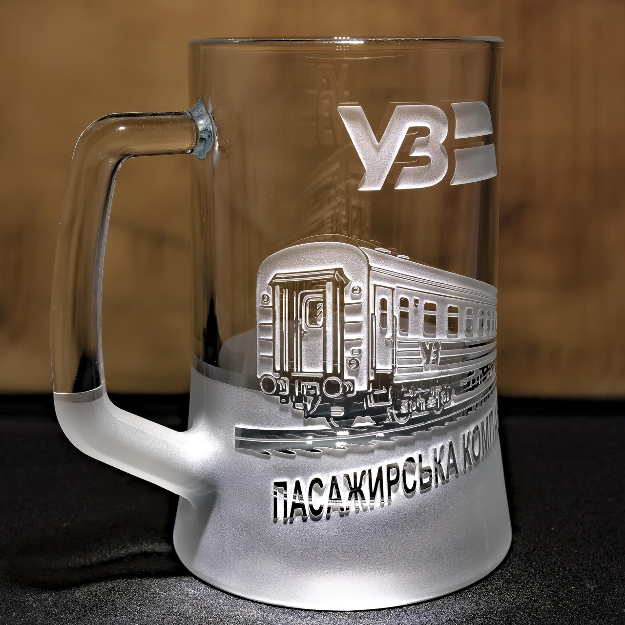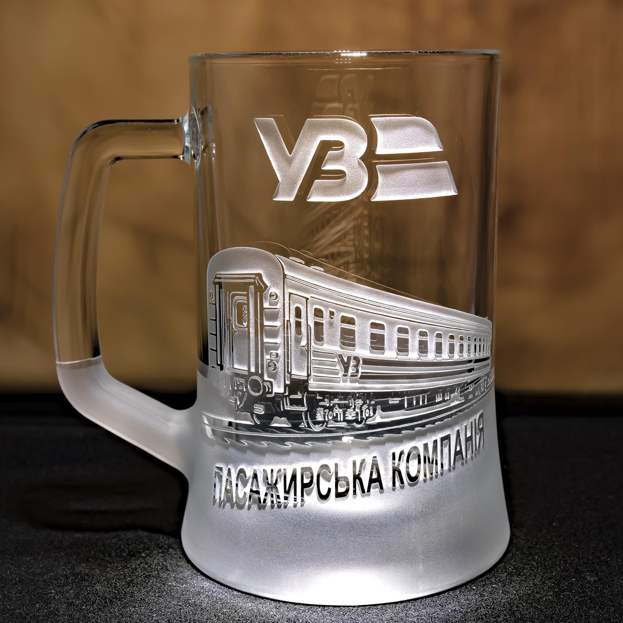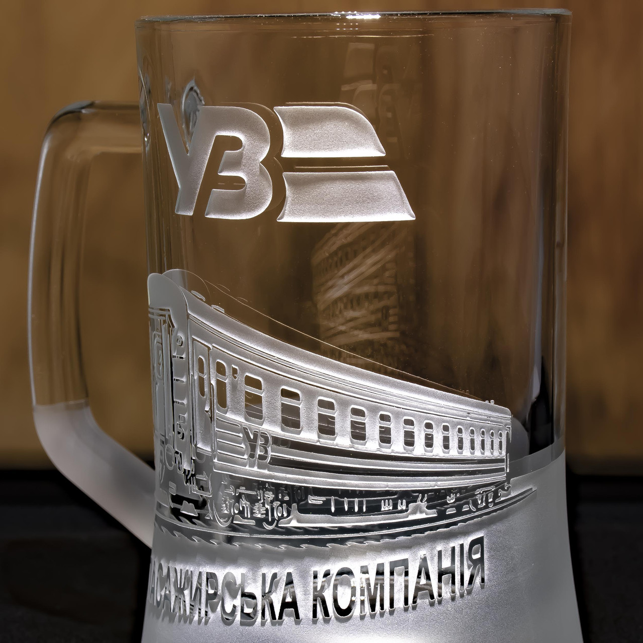 Пивной бокал с гравировкой Укрзализныця пассажирский вагон - подарок для машиниста, проводника, работника Укрзализныця