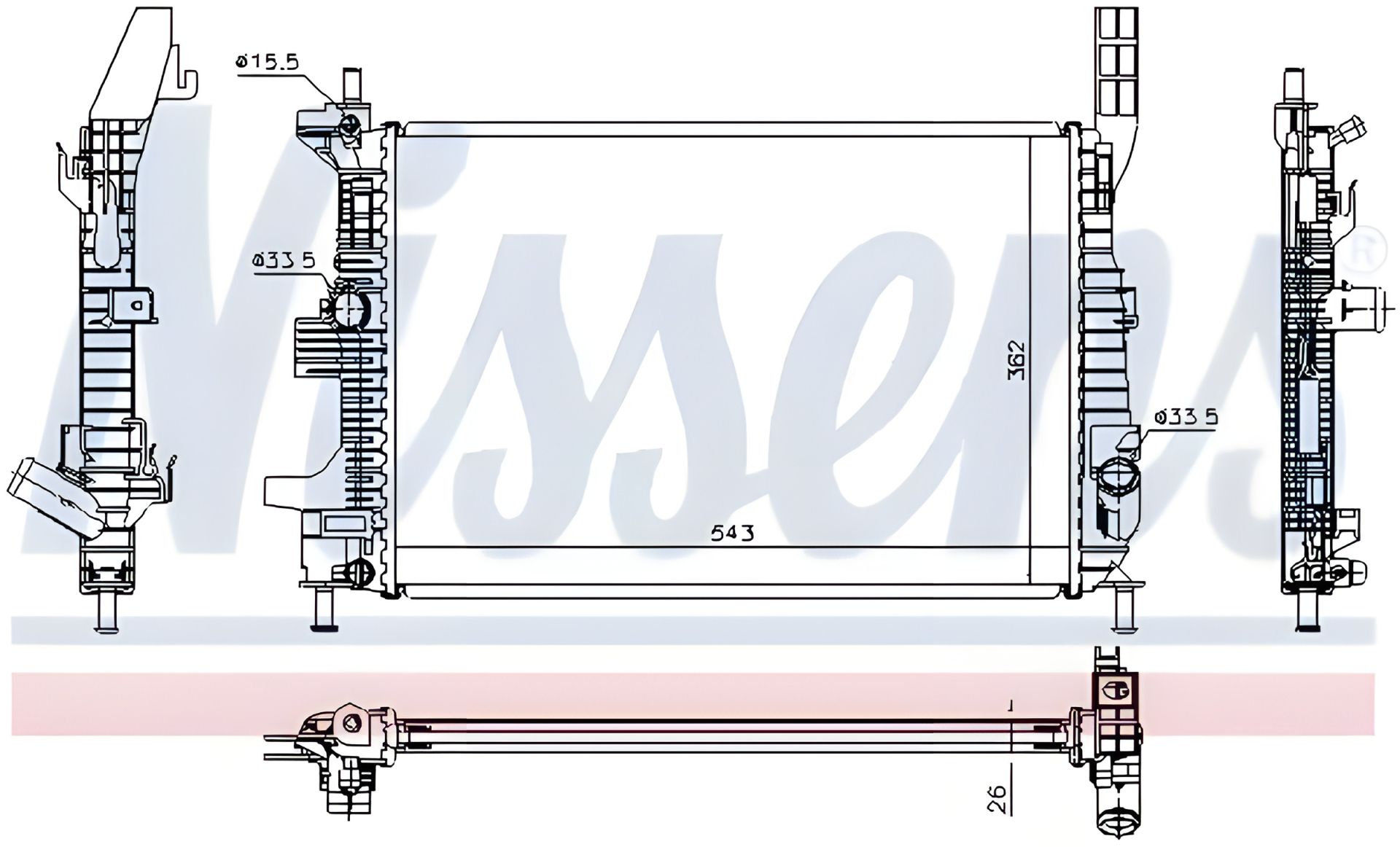 Радиатор охлаждения для FORD C-MAX II и FOCUS III (МКПП), Nissens (66860)