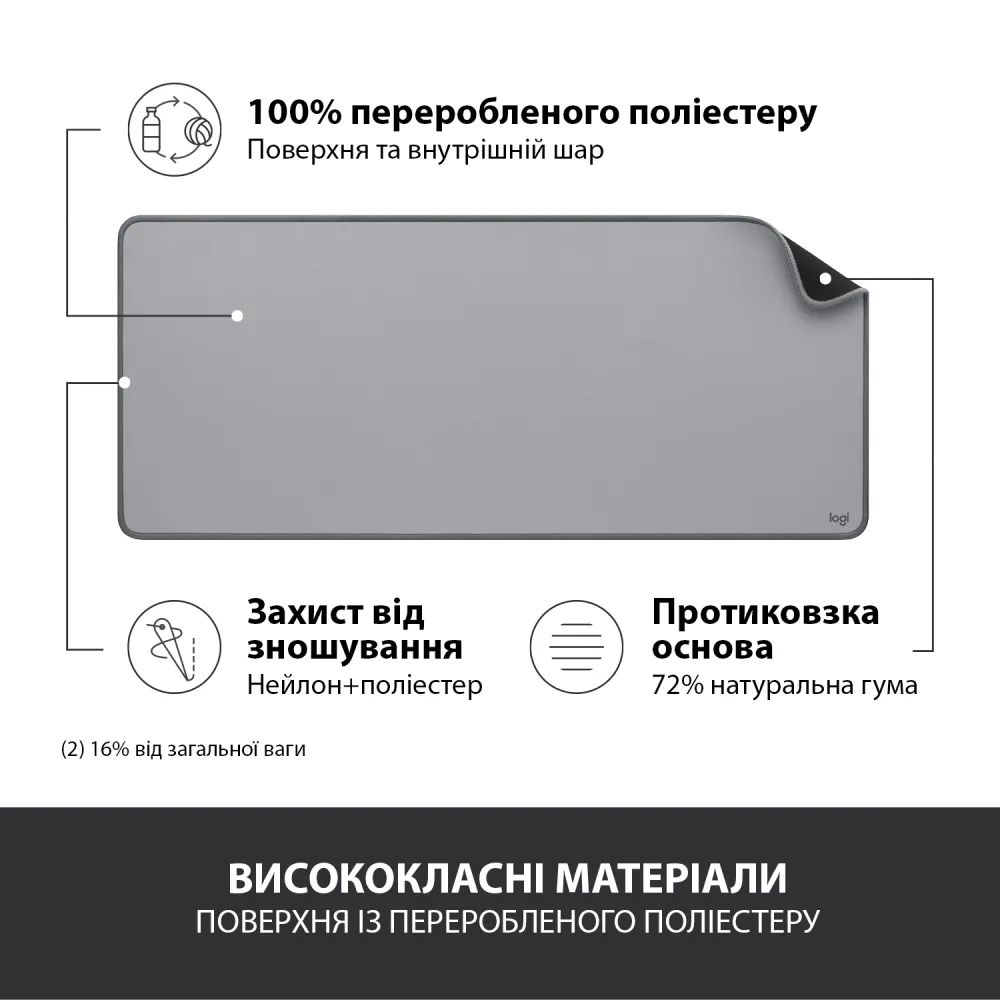 Килимок для миші Logitech Desk Mat Studio Series Mid Grey (956-000052)