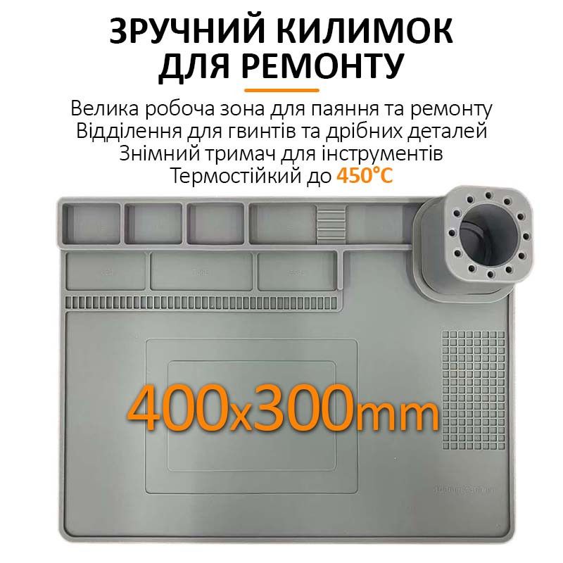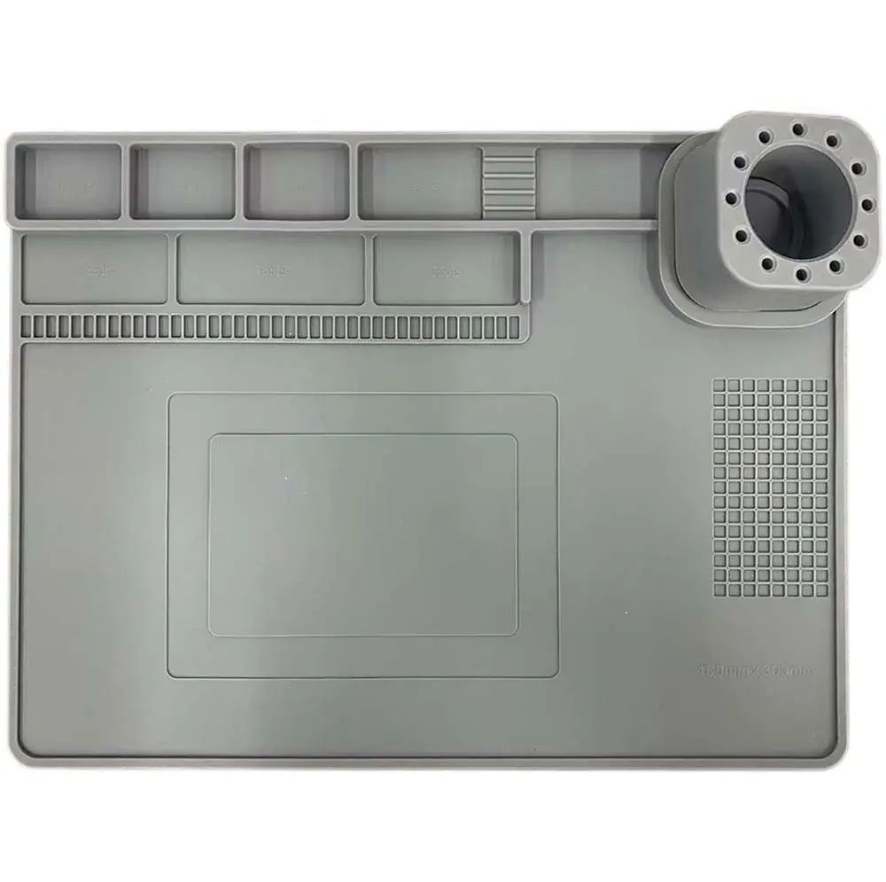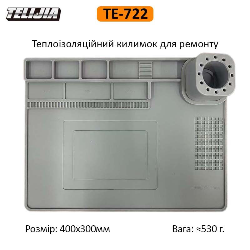 Теплоизоляционный силиконовый коврик для пайки и ремонта техники TELIJIA TE-722 — это надежный и удобный аксессуар, созданный специально для защиты рабочего стола, организации инструментов и повышения эффективности при пайке и ремонте электроники. Он идеально подходит как для профессиональных сервисных центров, так и для домашних мастерских.