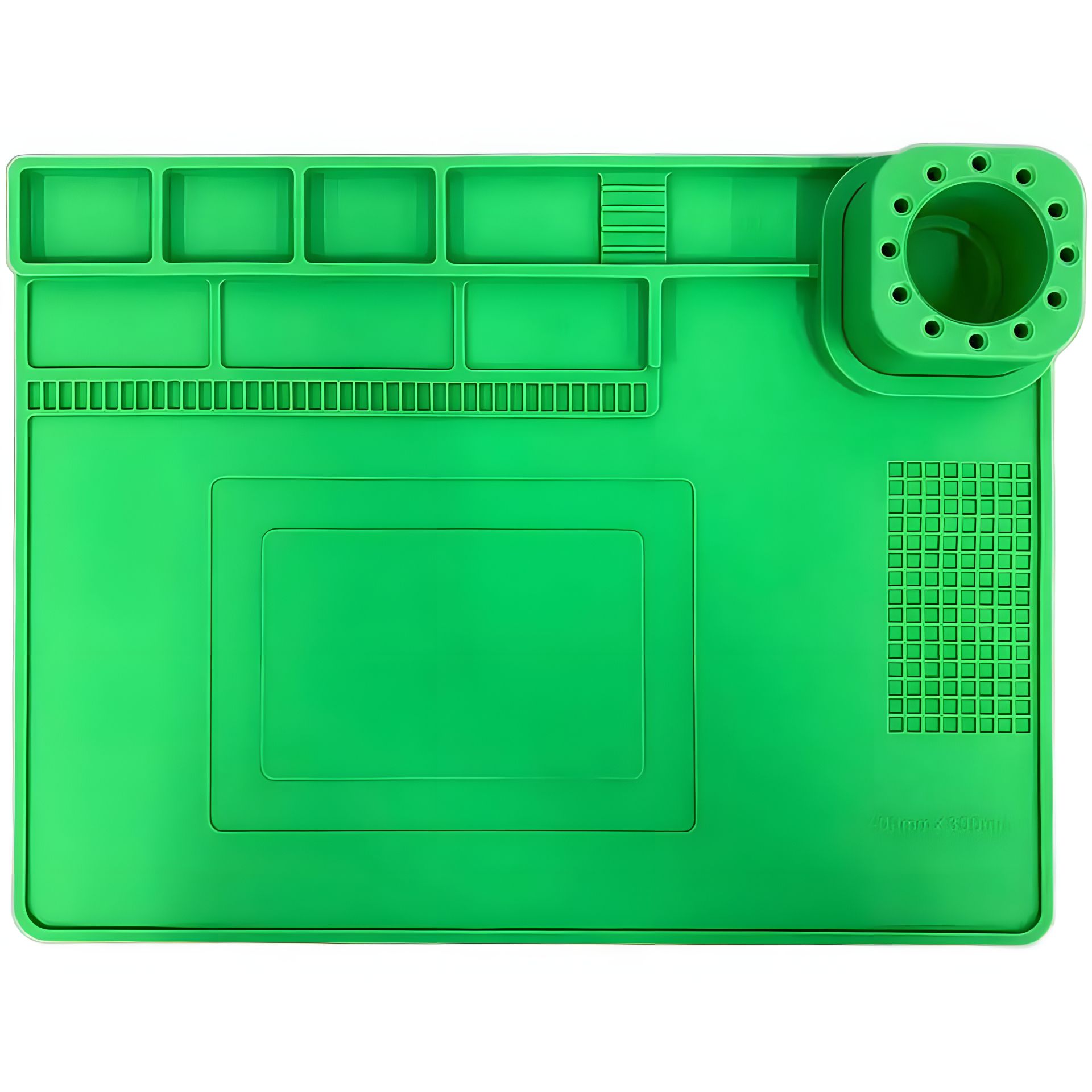 Теплоизоляционный силиконовый коврик для пайки и ремонта техники TELIJIA TE-722 — это надежный и удобный аксессуар, созданный специально для защиты рабочего стола, организации инструментов и повышения эффективности при пайке и ремонте электроники. Он идеально подходит как для профессиональных сервисных центров, так и для домашних мастерских.