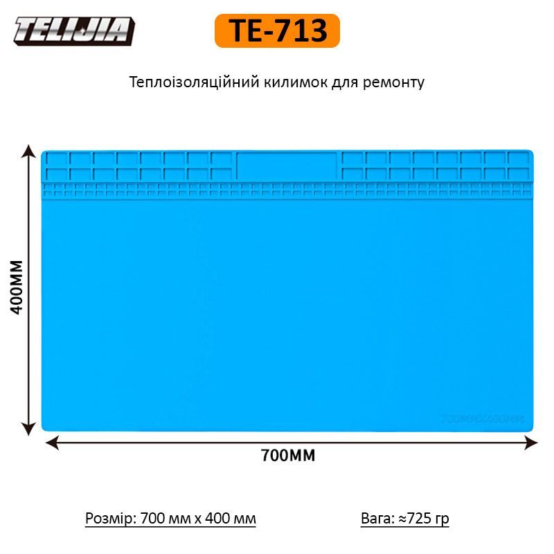 Теплоизоляционный силиконовый коврик TELIJIA TE-713 для пайки и ремонта техники 700x400 мм Blue