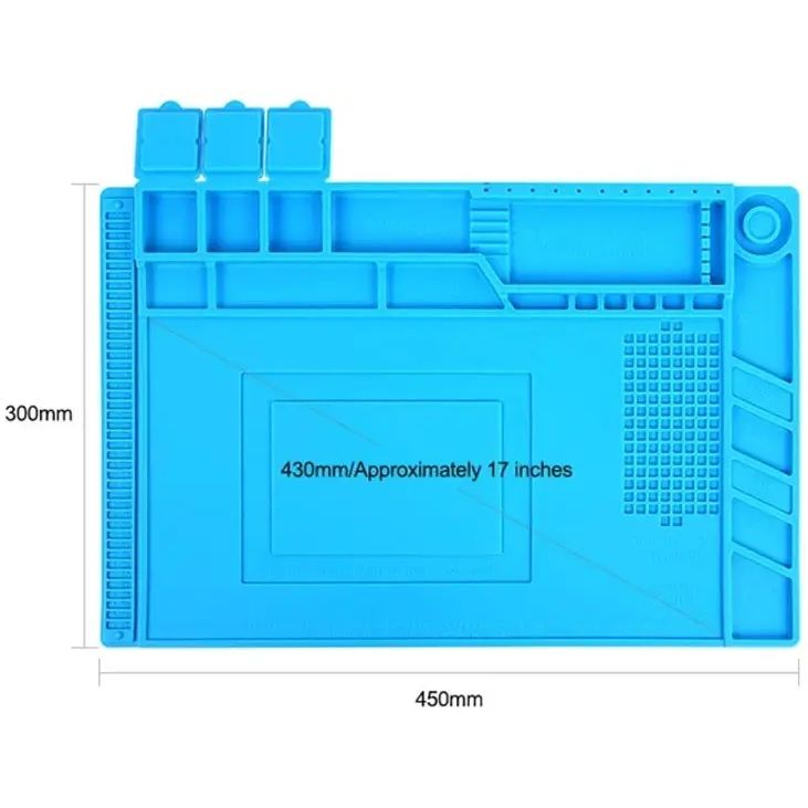 Силиконовый коврик Mechanic V51 / мат термостойкий для пайки и ремонта техники / 450x300 мм Blue
