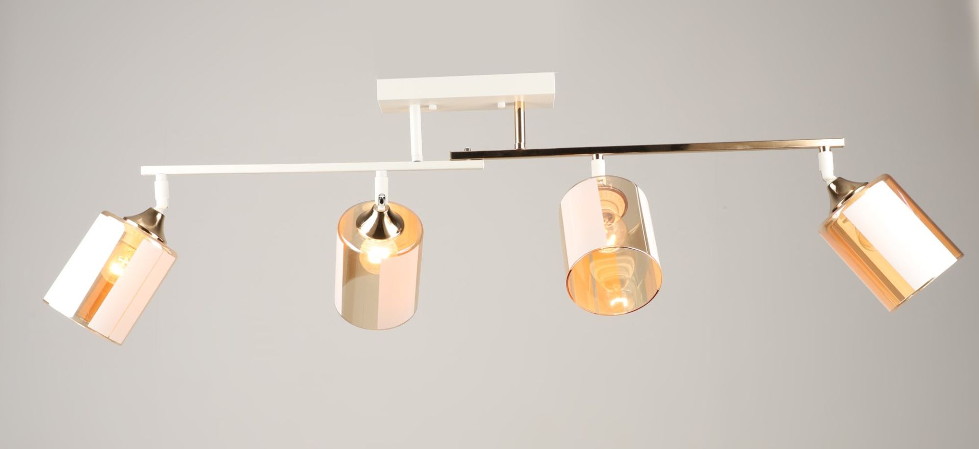 Люстра изготовлена из прочного металла в престижном сочетании белого и золотого цветов, которое мгновенно привлекает внимание. Четыре изящных стеклянных плафона обеспечивают интенсивный, но при этом мягкий и равномерный свет, идеальный для обеденной зоны, большой гостиной или просторного коридора.