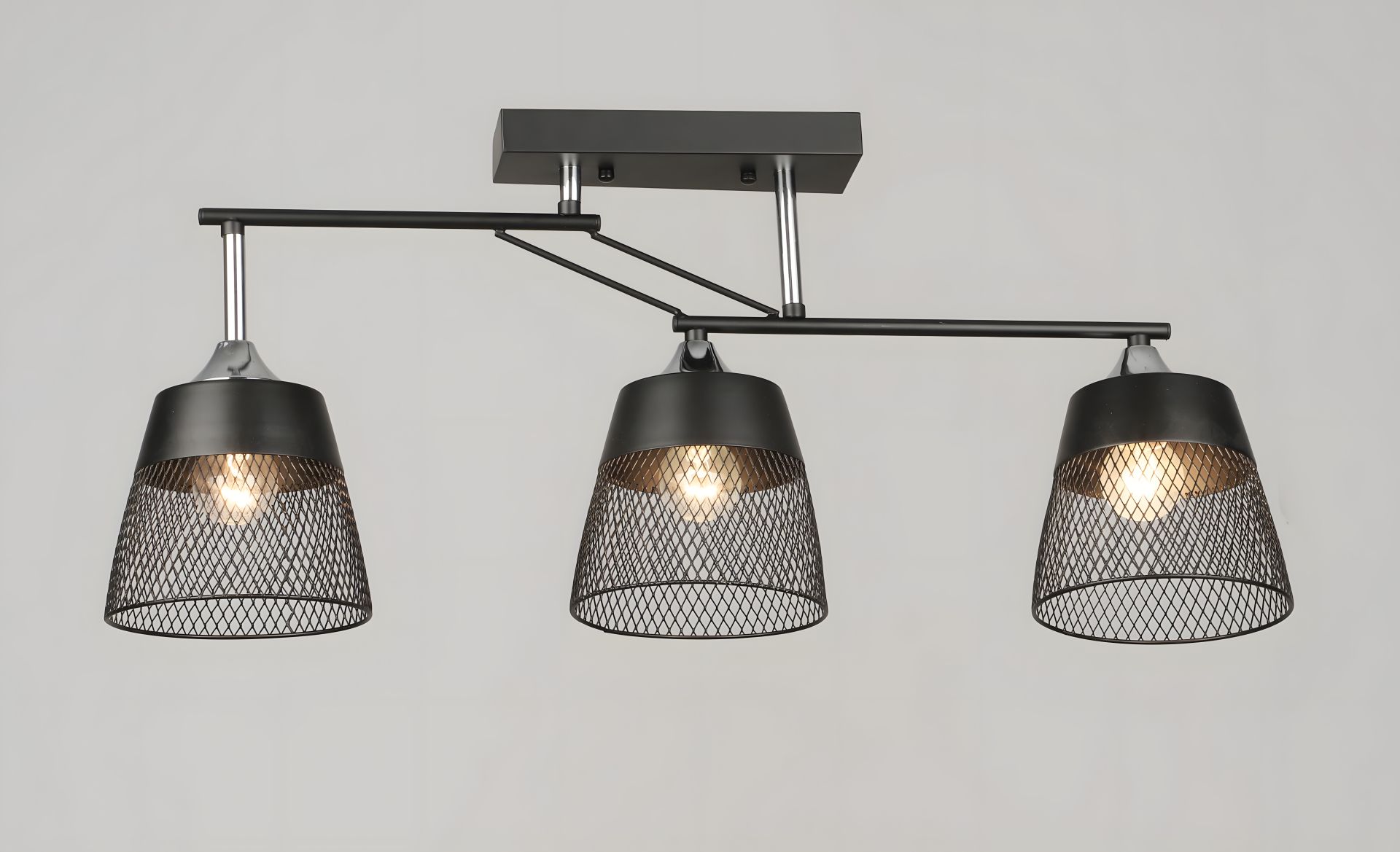 Модель выполнена в минималистичном стиле с использованием исключительно металла, что подчеркивает ее надежность. Контраст матового черного и блестящего хрома создает четкий и заметный акцент в современном интерьере. Благодаря трем источникам света, эта люстра отлично подойдет для освещения гостиной, столовой или просторной кухни.
