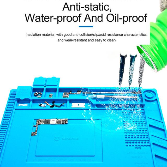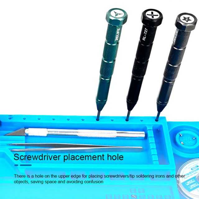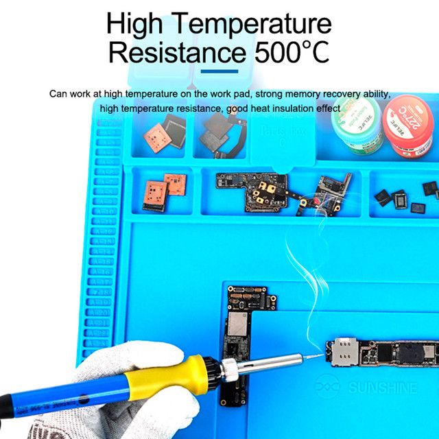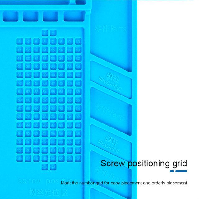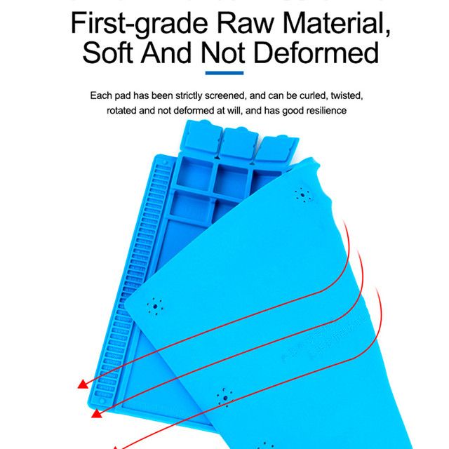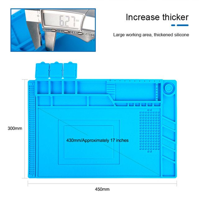 Силиконовый термостойкий мат AIDA S-160 для пайки и ремонта техники — это профессиональное рабочее решение, созданное специально для мастеров по ремонту электроники, мобильных устройств и мелкой техники. Этот мат сочетает в себе функциональность, надежность и удобство, обеспечивая порядок на рабочем месте и защиту поверхности от повреждений и воздействия высоких температур.
