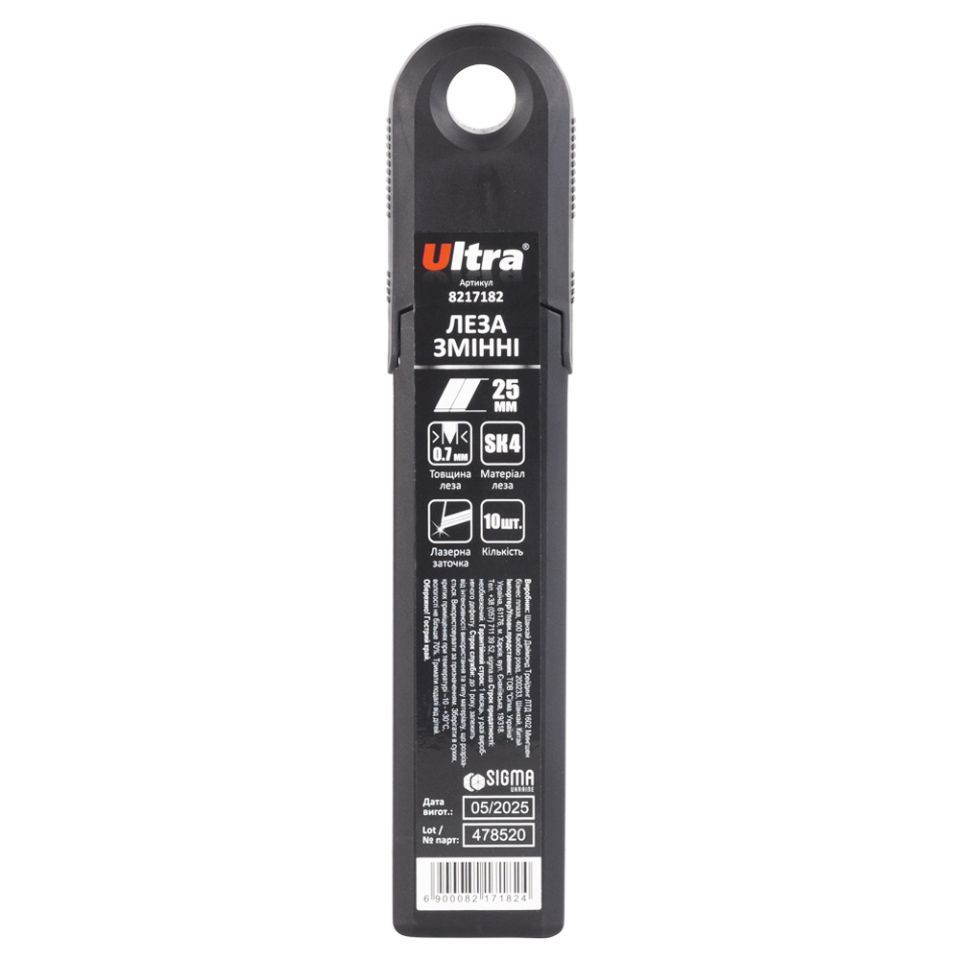 Лезвия сменные прямые 25×125×0.7мм 6 сегментов 10шт ULTRA (8217182)