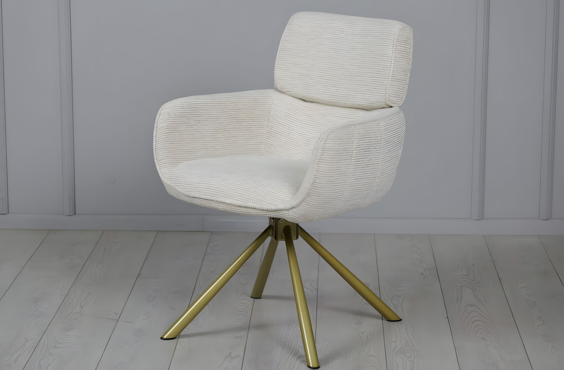 Міцний металевий каркас гарантує надійність, а ніжки із золотистим покриттям додають інтер’єру витонченості. Колір айворі (молочно-кремовий) гармонійно поєднується з білими, сірими, бежевими й темними відтінками, створюючи легку і світлу атмосферу.