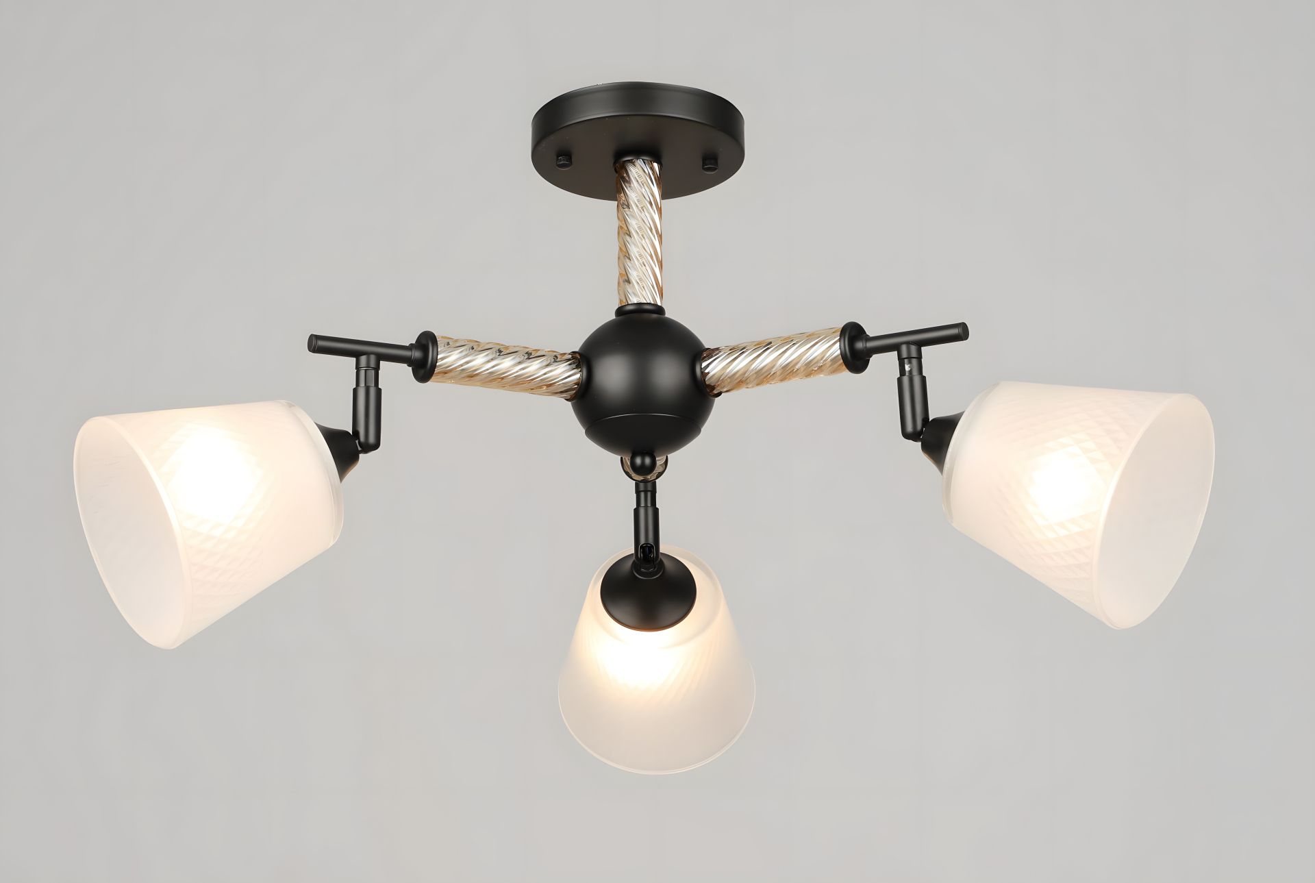 Современная потолочная люстра VALESO на 3 плафона — это идеальное сочетание стиля и функциональности для Вашего пространства. Люстра выполнена в модном минималистичном дизайне в глубоком Черном цвете, который легко впишется в любой современный интерьер. Корпус изготовлен из прочного металла и дополнен элегантными стеклянными плафонами. Главное преимущество этой модели – поворотные плафоны, что позволяет Вам самостоятельно регулировать направление света, создавая акценты в нужных зонах комнаты. Благодаря трем патронам E27, Вы получаете яркое, равномерное освещение, а выбор лампочек (которые не входят в комплект) остается за Вами. Люстра имеет оптимальные размеры D630*H290 мм, что идеально подходит для гостиной, кухни или спальни. Контролируйте свет и создавайте атмосферу!