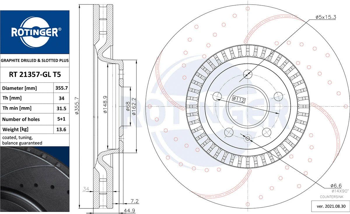 Диск тормозной AUDI A7, ROTINGER (RT21357GLT5)