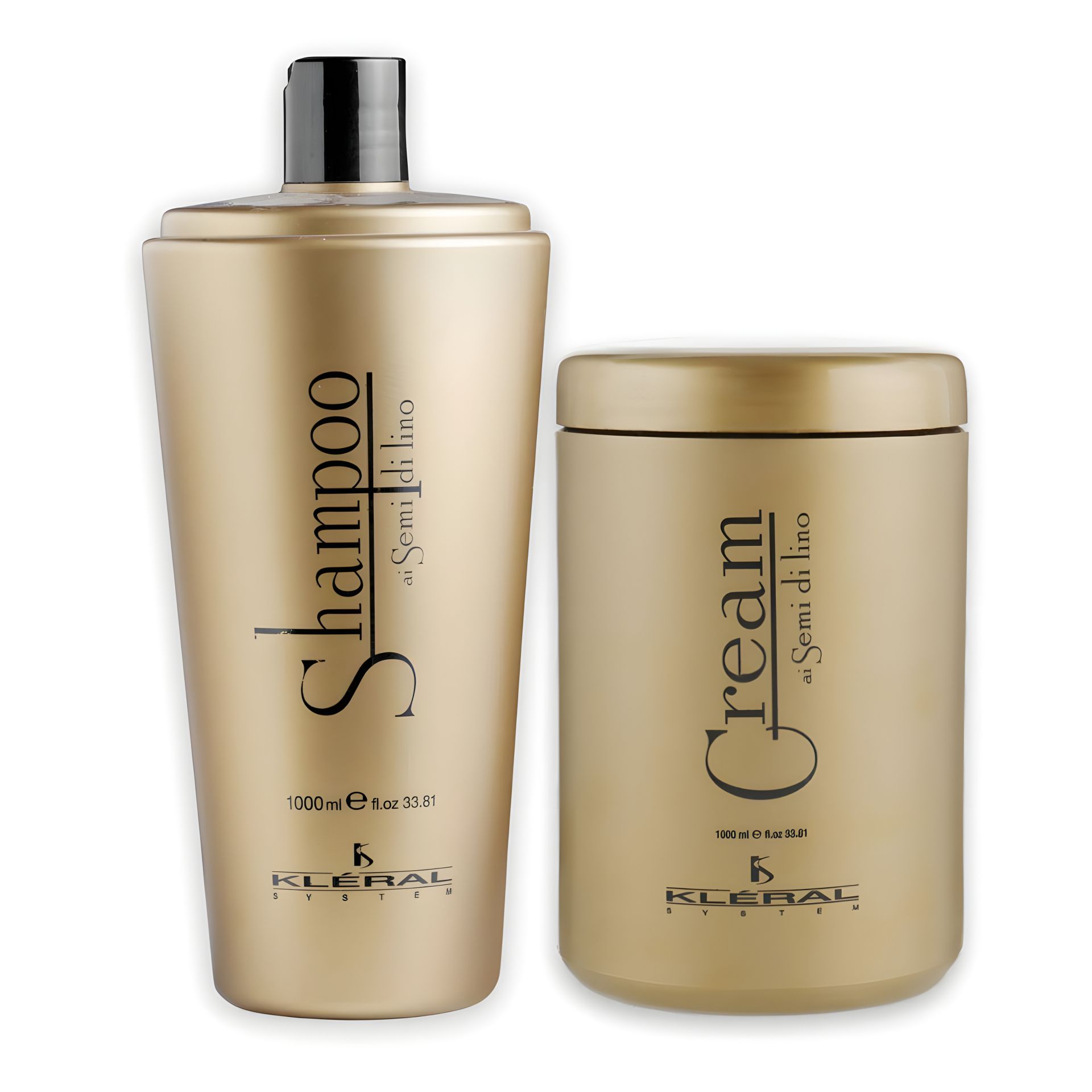 KLERAL System DUO: шампунь и маска с маслом льна для поврежденных волос, 2х1000 мл