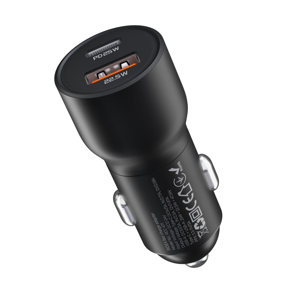Авто зарядное устройство Ridea RCC-47114 QPow Pro - это универсальное решение для зарядки портативных гаджетов в автомобиле, объединяющее современные технологии и практичный дизайн. Оно отличается исключительной надежностью и поддержкой актуальных протоколов, обеспечивая полноценную быструю зарядку сразу двух устройств одновременно. Особенности и преимущества зарядного устройства Ridea RCC-47114 QPow Pro: • Современный, минималистичный дизайн с плавными изгибами, который лаконично вписывается в салон любого автомобиля. • Компактные размеры: 63.8 × 26 × 26мм, - не мешает и не отвлекает внимание, обеспечивая удобное повседневное использование. • Ударопрочный корпус с надежной сборкой и современные электронные компоненты высочайшего качества. • Металлические боковые и нижний контакты, которые гарантируют плотную посадку и стабильную подачу энергии. • Широкий диапазон входного напряжения: 12-24V, - обеспечивает совместимость с большинством современных авто. • 1 разъем USB-A и 1 разъем Type-C, общая максимальная мощность на выходе которых составляет 47.5W. • Максимальная мощность на выходе разъема USB-A: 22.5W (5V/3A, 9V/2.5A, 12V/1.87A). • Максимальная мощность на выходе разъема Type-C: 25W (5V/3A, 9V/2.77A, 12V/2.08A). • Поддержка адаптивной быстрой зарядки через разъем Type-C по технологии PPS с напряжением 3.3-11V при силе тока 3A. • Поддержка быстрой зарядки по протоколам QC и PD, которые обеспечивают ускоренную подачу энергии для совместимых устройств. • Технология интеллектуальной зарядки, которая автоматически определяет оптимальный режим подачи энергии. • Многоуровневая система защиты от перегрева, перегрузки, скачков напряжения и короткого замыкания. Комплектуется надежным кабелем Type-C - Type-C, который гарантирует стабильную, полноценную работу устройства. Высокая мощность и поддержка актуальных стандартов быстрой зарядки делают адаптер Ridea RCC-47114 QPow Pro идеальным выбором для повседневного интенсивного использования в автомобиле.