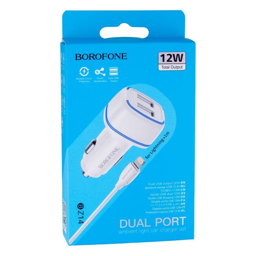 Авто Зарядное Устройство Borofone BZ14 Lightning 2USB 2.4A Цвет Черный