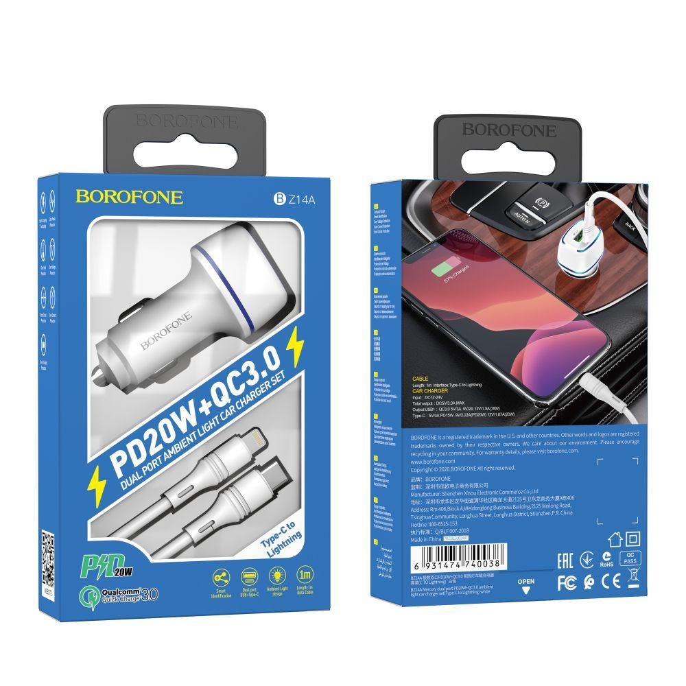 Авто Зарядное Устройство Borofone BZ14A PD20W+QC3.0 Type-C to Lightning 3A Цвет Черный