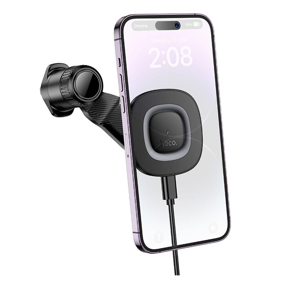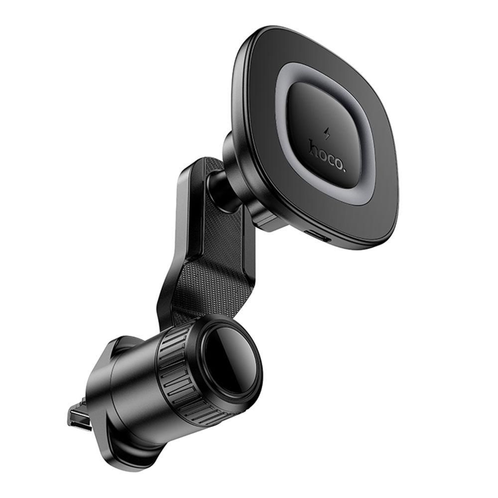 Автодержатель Hoco HW30 — это практичное решение 2 в 1: магнитное крепление и беспроводная зарядка в одном устройстве. Он обеспечивает надёжную фиксацию смартфона и автоматическую подзарядку во время поездки, поддерживая чистоту пространства без лишних проводов и удерживая гаджет в самом удобном положении. Особенности и преимущества автодержателя Hoco HW30: • Современный дизайн с практичными деталями, стильными текстурированными и глянцевыми элементами. • Компактные размеры: 98×60×99мм, — не отвлекает внимание и не перекрывает поток воздуха с дефлектора. • Надёжная конструкция из стойкого к нагрузкам ABS–пластика с утолщёнными защитными накладками из силикона. • Мощный кольцевой магнит, который обеспечивает надежную фиксацию iPhone 12-16 и других смартфонов, оснащёнными магнитами. • Дополнительное кольцо для обеспечения совместимости с большинством современных смартфонов диагональю 4.5–7.0″. • Беспроводная зарядка для iPhone с поддержкой MagSafe и других устройств, поддерживающих технологию Qi. • Широкая вариативность выходной мощности: 5, 7.5, 10 и 15W (для MagSafe — 7.5W). • Современный разъём Type–C для подключения к источнику питания (5V/2A, 9V/1.67A). • Удлиненная ножка с шарнирами в двух местах для настройки поворота и угла наклона смартфона вне точки крепления держателя на диффузоре. • Усовершенствованное крепление с крюком для устойчивой установки на большинство вентиляционных решеток (кроме радиальных). Автодержатель HW30 — идеальное решение для водителей, которым важны технологичность, функциональность и порядок в салоне.