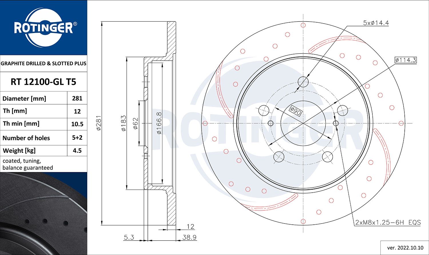 Диск тормозной TOYOTA CAMRY, LEXUS NX, ROTINGER (RT12100GLT5)