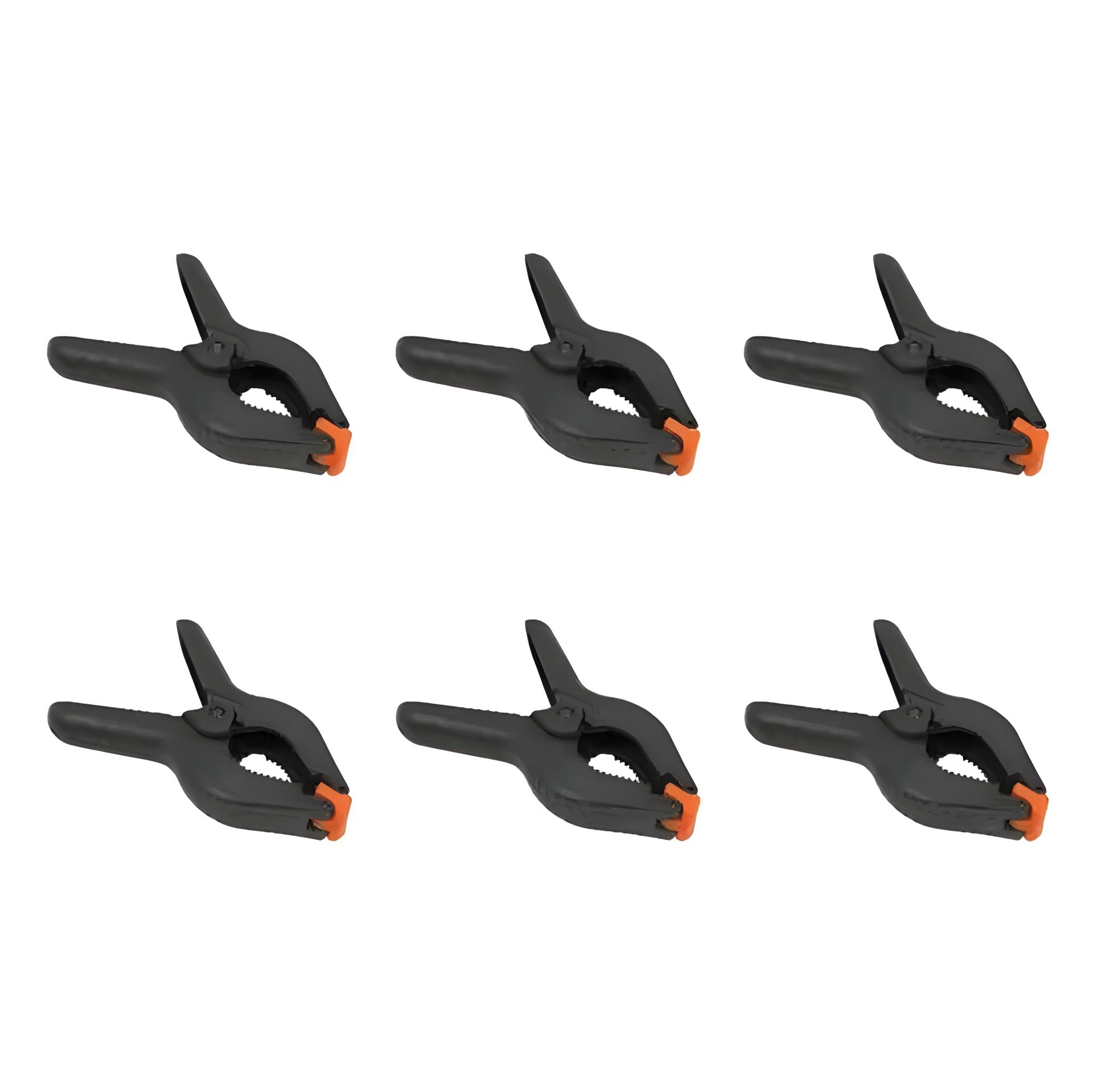 Пластиковые пружинные струбцины, комплект 6 шт |7х5 см, раскрытие до 3 см | Black-Orange