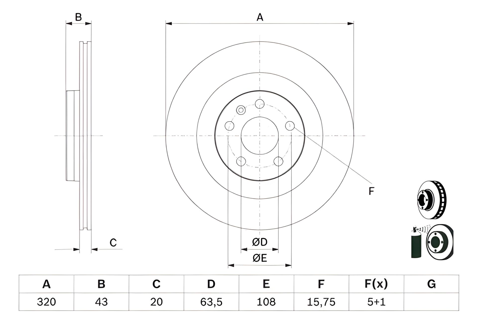 Количество отверстий : 5 Тип тормозного диска : вентилируемый Высота [мм] : 43 Диаметр центрирования [мм] : 63,5 Ø фаски [мм] : 108 выполняет нормы ЕЭК : ECE-R90 Поверхность : с покрытием Толщина тормозного диска (мм) : 20 Наружный диаметр [мм] : 320 Диаметр отверстия до [мм] : 15,75 Минимальная толщина [мм] : 17,5 VOLVO 31400778 31471816 VOLVO S90 II (234) T8 Plug-in Hybrid AWD | седан | Бензин / электричество B 4204 T57,B 4204 T53 | 340 kw | 462 hp | 04.2022-. VOLVO V90 II Cross Country (236) T5 Drive-E Polestar AWD | универсал | бензин B 4204 T23 | 192 kw | 261 hp | 10.2016-12.2018 VOLVO V90 II Cross Country (236) B6 Mild-Hybrid AWD | универсал | Бензин / электричество B 4204 T29 | 220 kw | 299 hp | 03.2020-. VOLVO V90 II Cross Country (236) T6 AWD | универсал | бензин B 4204 T29 | 228 kw | 310 hp | 10.2017-. VOLVO V90 II Cross Country (236) Polestar AWD | универсал | Дизель D 4204 T14 | 147 kw | 200 hp | 10.2016-. VOLVO V90 II Cross Country (236) D4 AWD | универсал | Дизель D 4204 T14 | 140 kw | 190 hp |