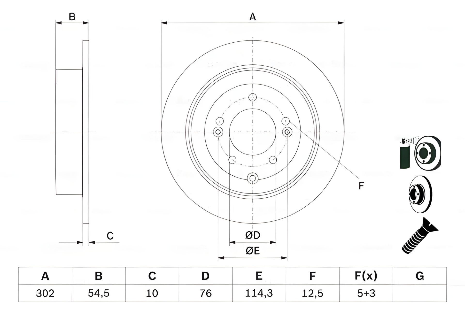 Толщина тормозного диска (мм) : 10 Количество отверстий : 5 Тип тормозного диска : цельный Высота [мм] : 54,5 Дополнительный артикул / дополнительная информация 2 : с винтами Ø фаски [мм] : 114,3 Диаметр центрирования [мм] : 76 выполняет нормы ЕЭК : ECE-R90 Поверхность : с покрытием Минимальная толщина [мм] : 8,4 Диаметр отверстия до [мм] : 12,5 Наружный диаметр [мм] : 302 KIA 58411D3000 HYUNDAI 58411D3000 HYUNDAI (BEIJING) TUCSON (TL) 1.6 TGDi | SUV | бензин G4FJ | 130 kw | 177 hp | 09.2015-. KIA SPORTAGE IV (QL, QLE) 2.0 CRDi | SUV | Дизель D4HA | 136 kw | 185 hp | 09.2015-09.2022 KIA SPORTAGE IV (QL, QLE) 2.0 AWD | SUV | бензин G4NA | 114 kw | 155 hp | 12.2015-09.2022 KIA SPORTAGE IV (QL, QLE) 2.0 | SUV | бензин G4NA | 114 kw | 155 hp | 12.2015-09.2022 KIA SPORTAGE IV (QL, QLE) 2.4 GDI AWD | SUV | бензин G4KJ | 135 kw | 184 hp | 09.2015-09.2022 KIA SPORTAGE IV (QL, QLE) 2.0 CRDi AWD | SUV | Дизель D4HA | 136 kw | 185 hp | 09.2015-09.2022 HYUNDAI TUCSON (TL, TLE) 2.0 CVVT | SUV | бензин G4NA | 110 kw | 15