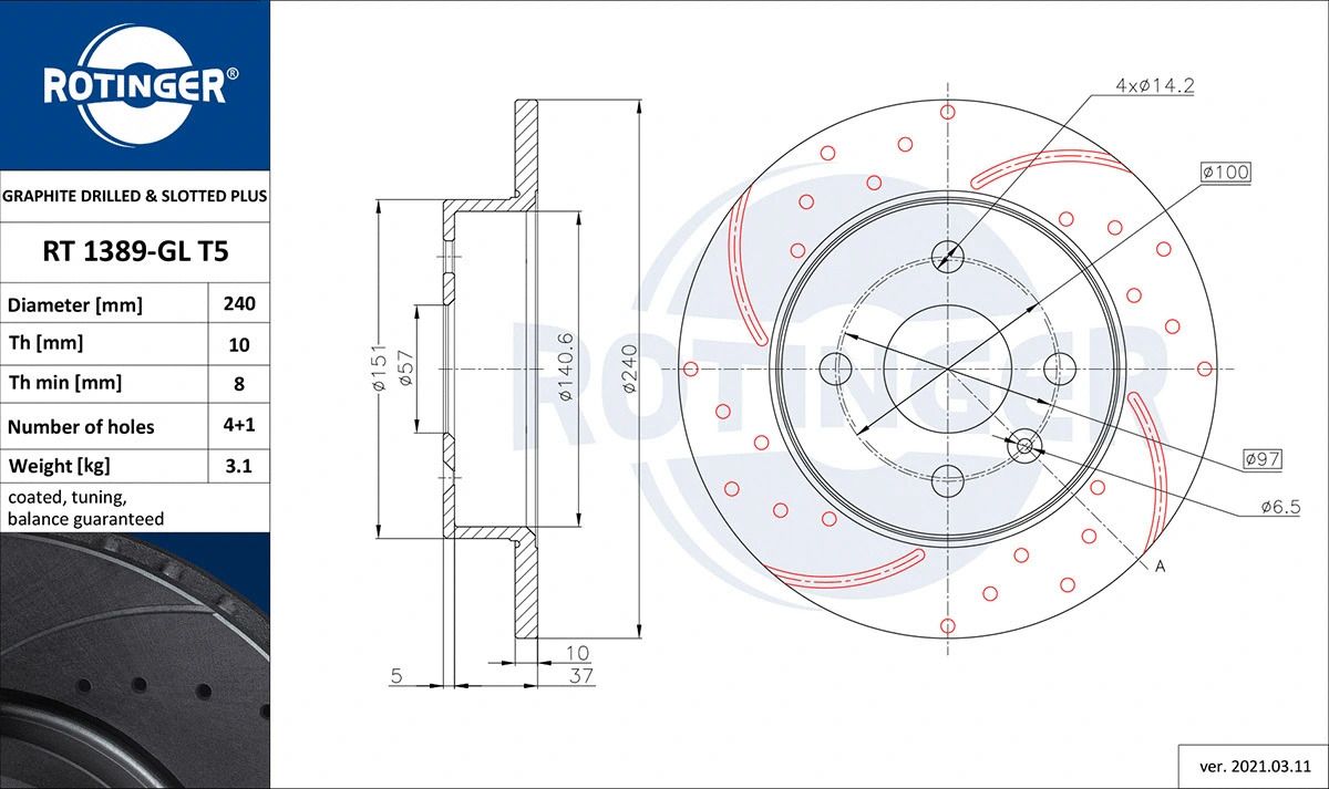 Диск тормозной CHEVROLET CORSA, OPEL ASTRA, ROTINGER (RT1389GLT5)