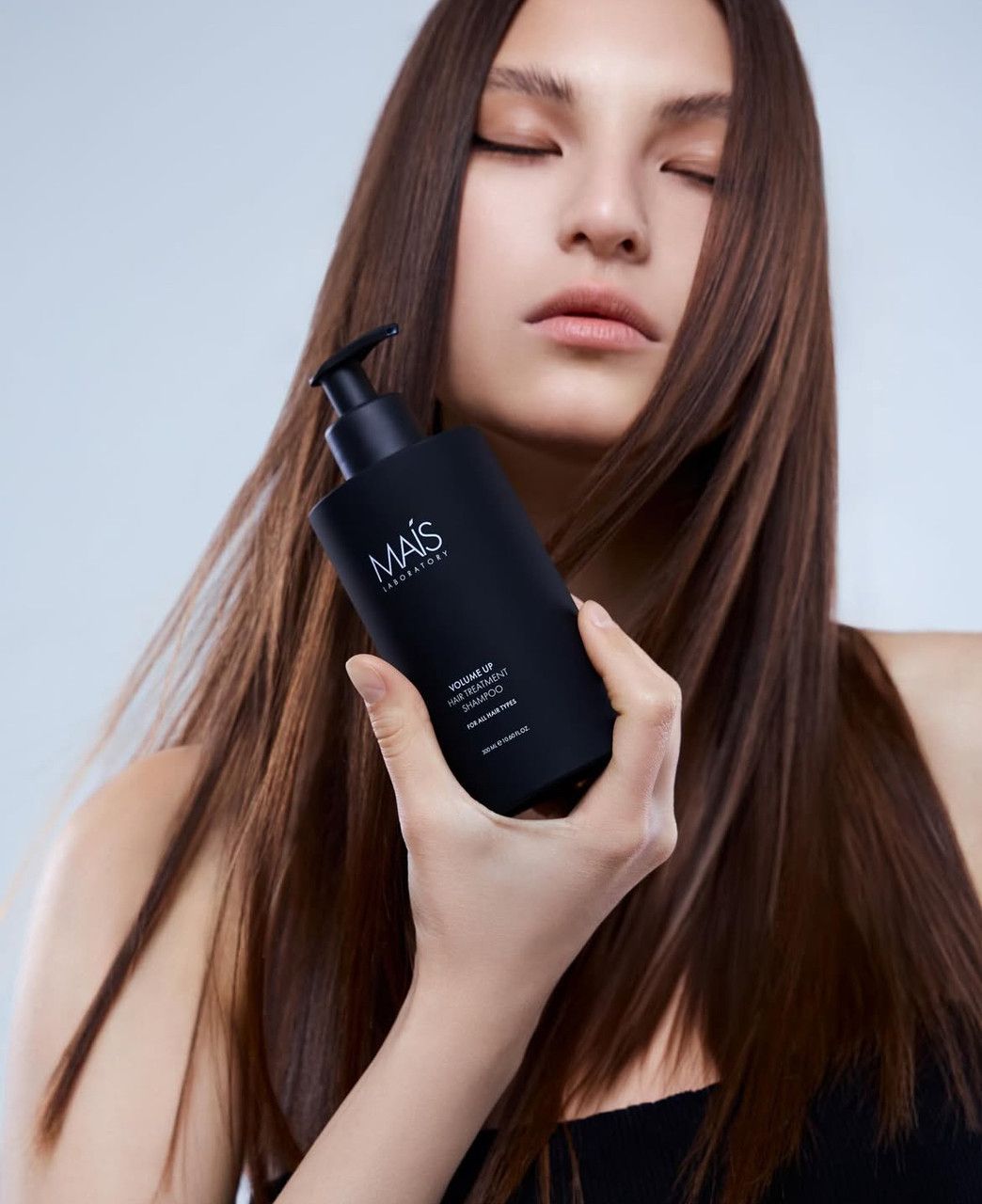 Mais Volume UP Hair Treatment Shampoo — шампунь для тонких и ослабленных волос, нуждающихся в объеме; мягко очищает кожу головы, поднимает пряди у корней, укрепляет структуру без утяжеления, подходит для ежедневного использования на всех типах, включая окрашенные, помогает создать воздушную и плотную прическу.