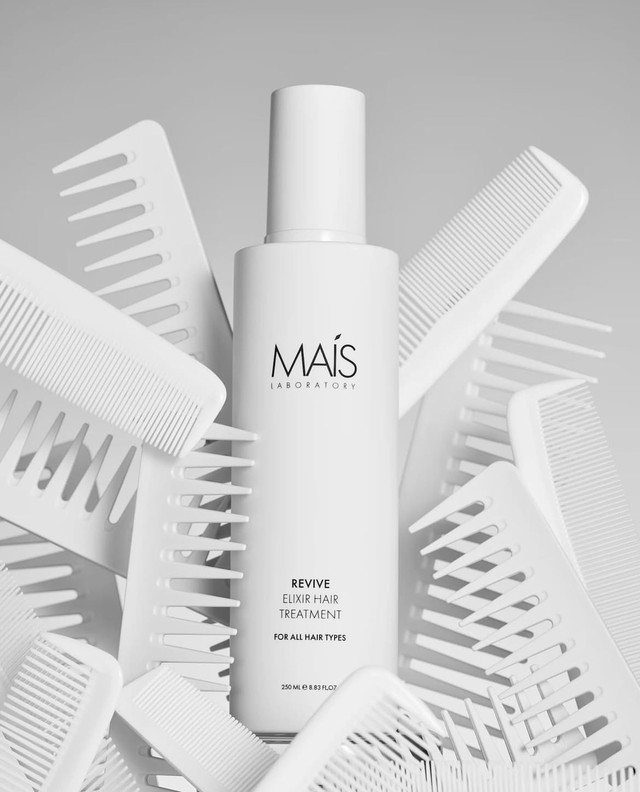 Mais Revive Elixir Hair Treatment — многофункциональный несмываемый эликсир для комплексного ухода за поврежденными, сухими и ослабленными волосами; глубоко питает структуру, восстанавливает эластичность и увлажняет по длине, создает защитный барьер от термического воздействия и внешних факторов, подходит для всех типов, включая окрашенные волосы, для ежедневного использования без утяжеления.