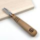Полированная серия PROFI выполнена из стали У8 (твердость 58–62 HRC), что обеспечивает долговечность инструмента. Режущая кромка шириной 10 мм с прогибом 5 мм и металлическая часть 45 мм обеспечивают точность и контроль в работе. Рукоятка из груши с льняным покрытием и ограничительными кольцами гарантирует надежный хват и комфорт.